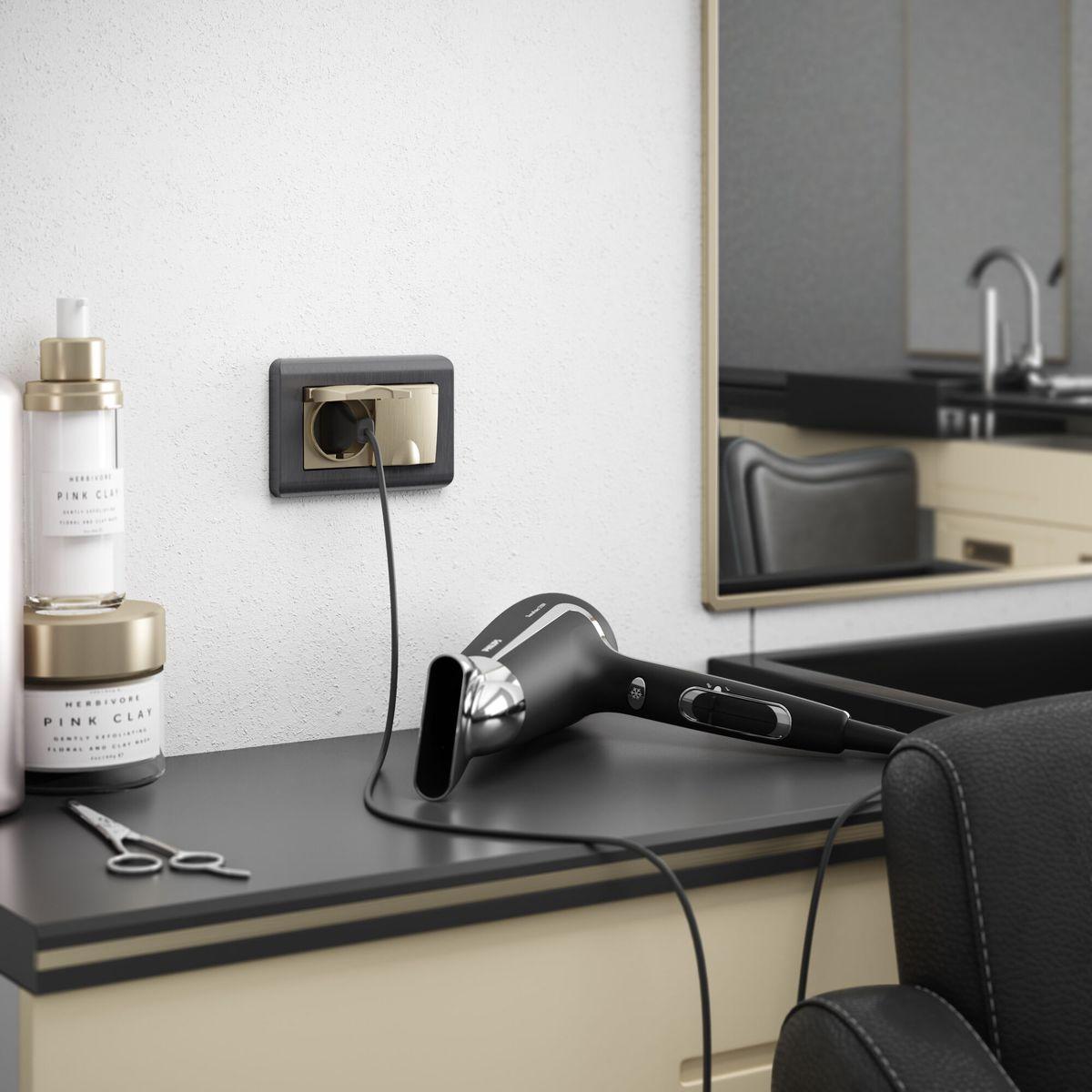 Купить "Розетка двойная влагозащищенная с заземлением с защитной крышкой и шторками Werkel шампань рифленый W1172210 4690389178108"
