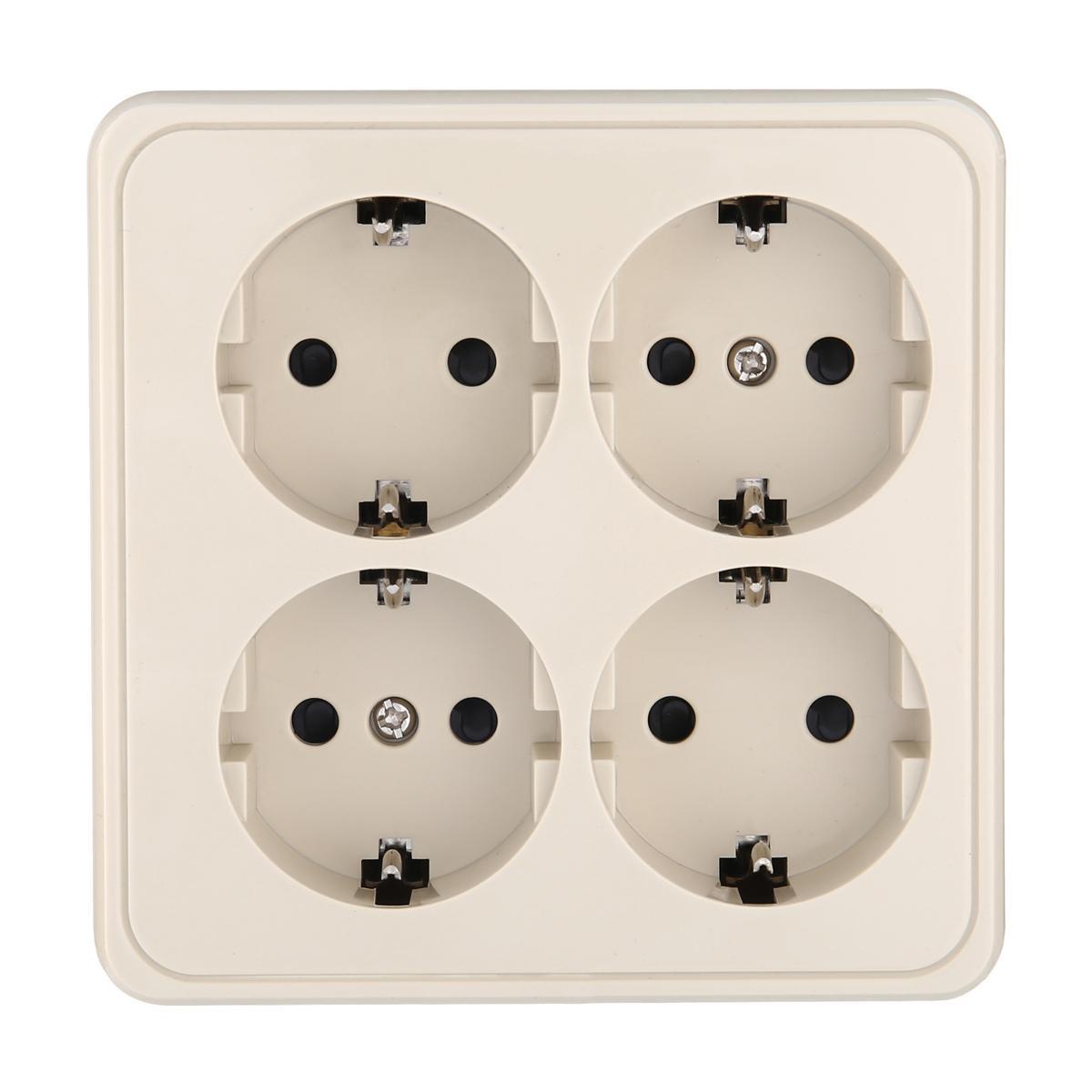 Купить "Розетка LK Studio четырехместная открытой установки с заземляющими контактами и защитными шторками, (бежевый) 813801"