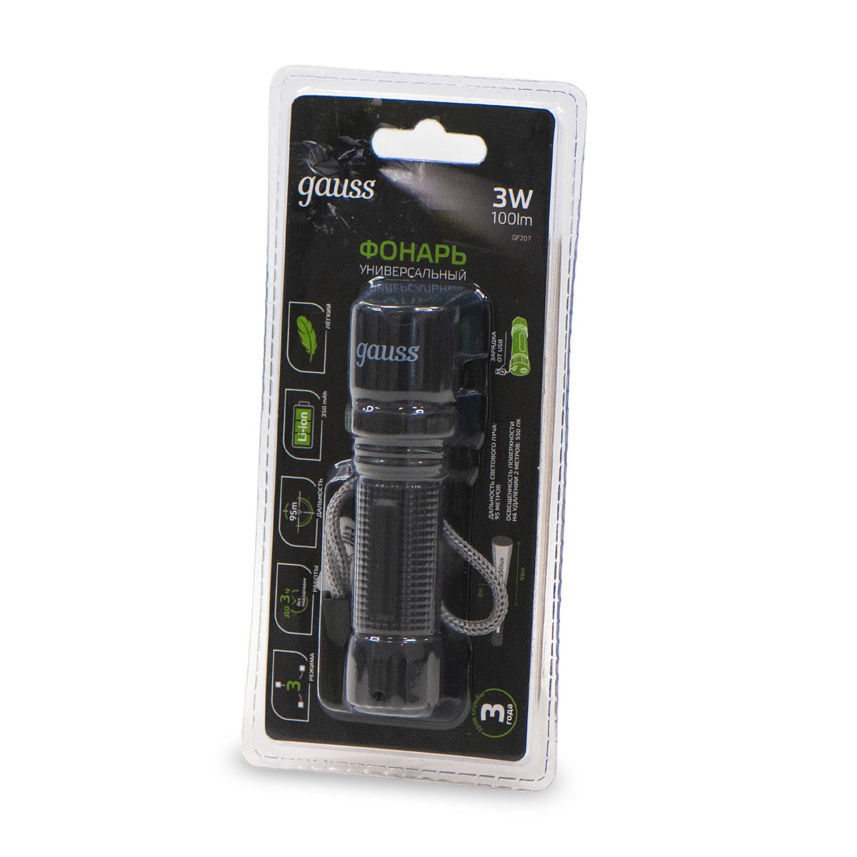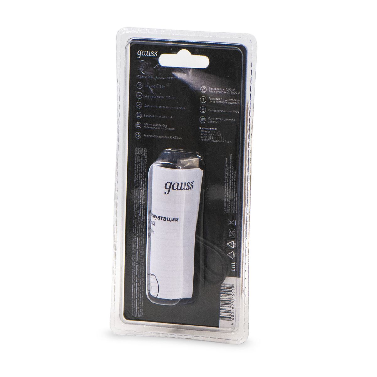 Купить "Ручной светодиодный фонарь Gauss аккумуляторный 178х38 100 лм GF207"
