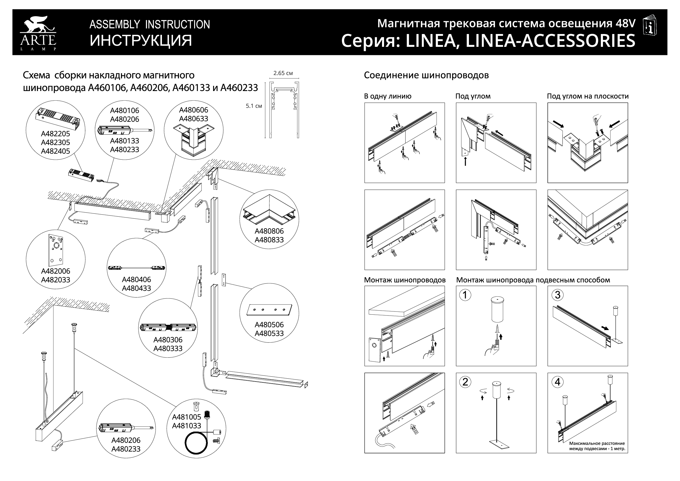 Для подвесного монтажа необходимо дополнительно приобрести кронштейн-подвес Arte Linea-Accessories A481005 (длина троса 2м)