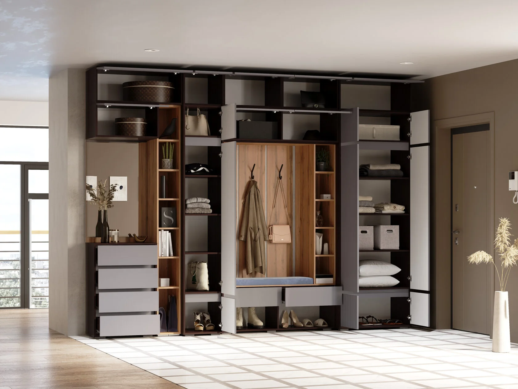 Шкаф двухстворчатый Woodville Роут венге / графит софт 593729 в Ялте