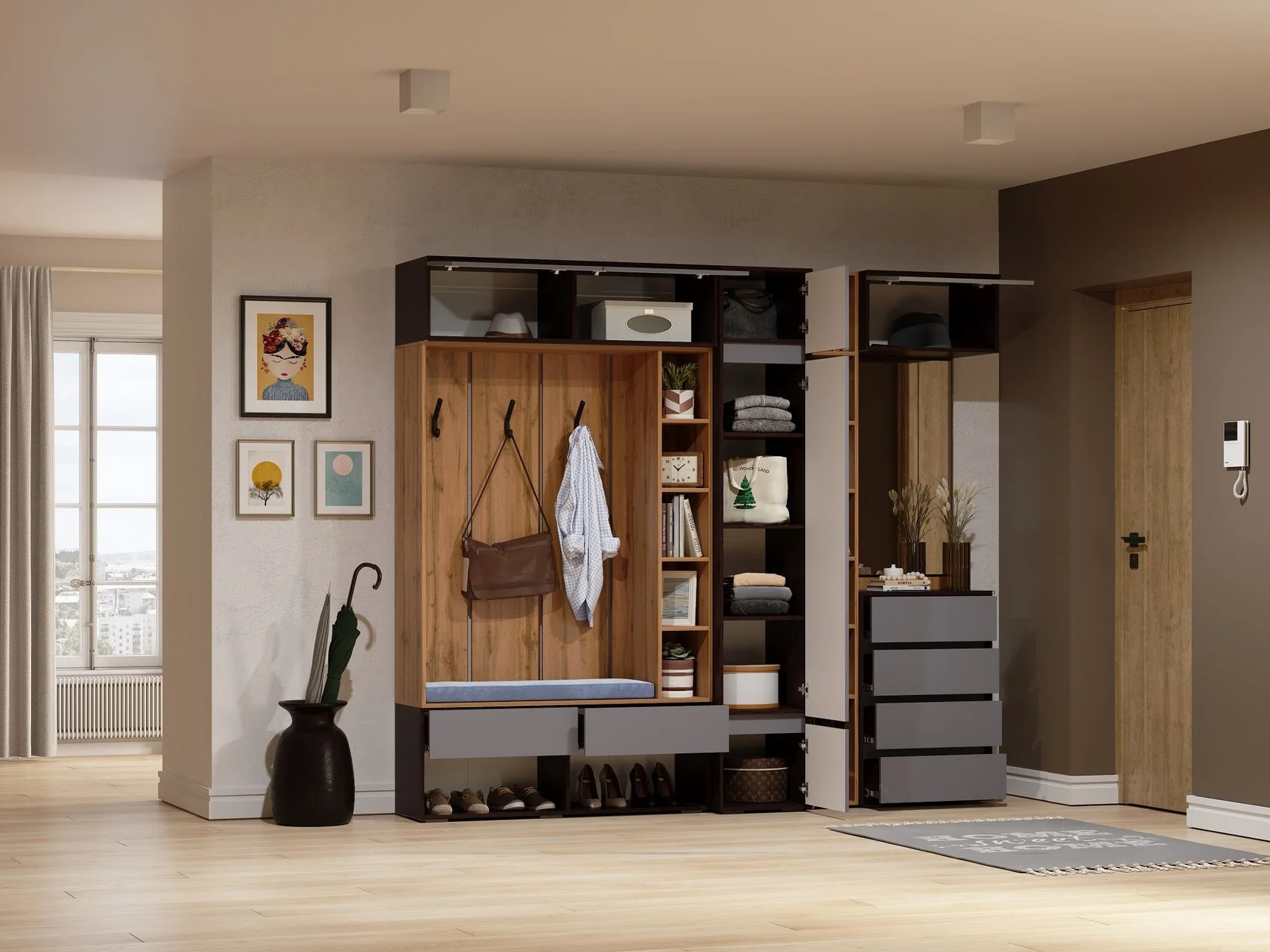 Купить "Шкаф Woodville Роут венге / графит софт 593721"