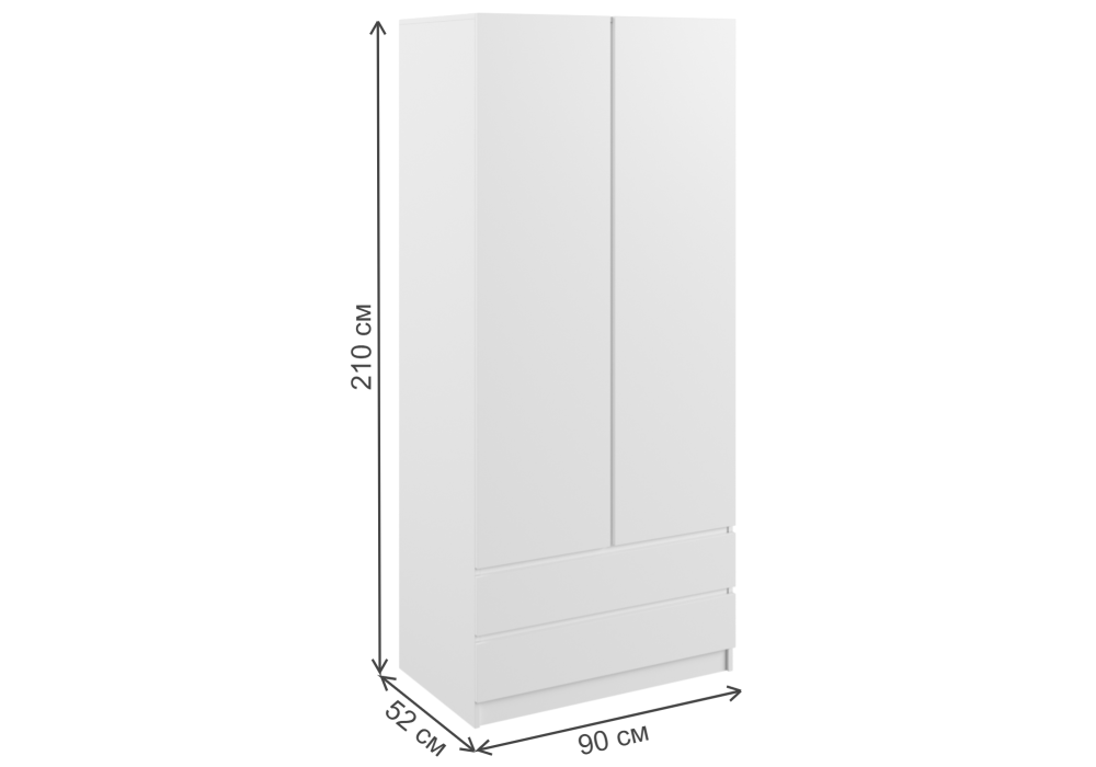 Материал каркаса - ЛДСП; Цвет каркаса - Белый; Ширина - 90; Глубина - 52; Высота - 210;