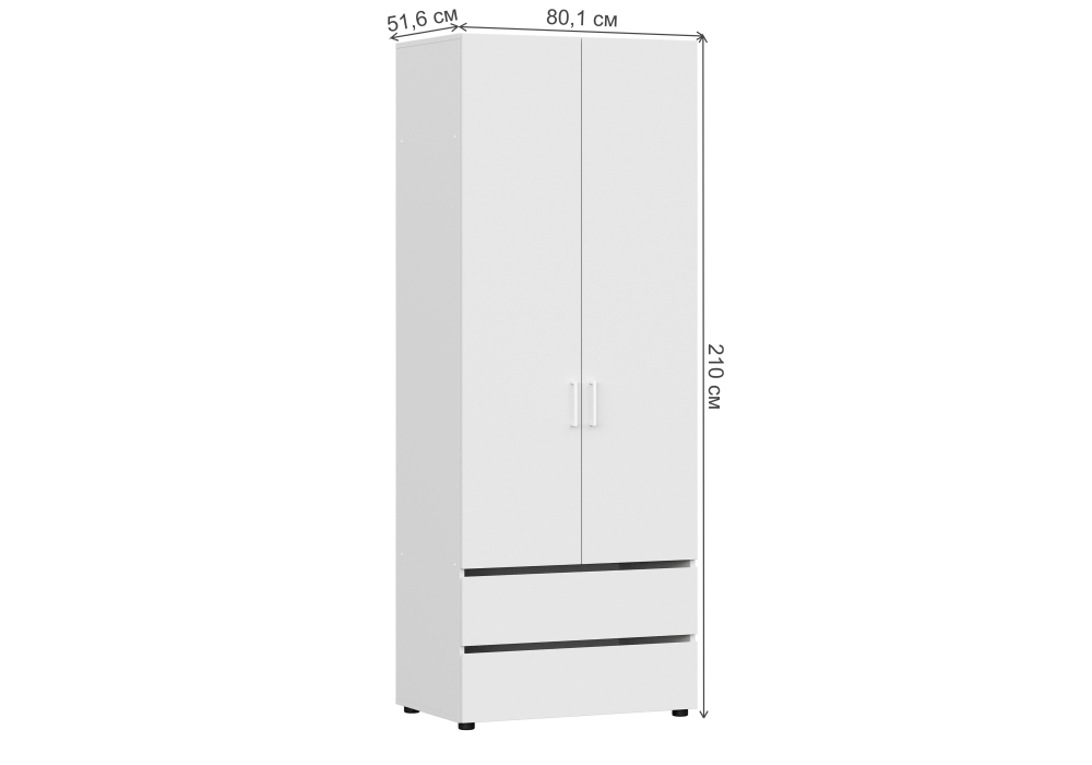 Материал каркаса - ЛДСП; Цвет каркаса - Белый; Ширина - 80,1; Глубина - 51,6; Высота - 210;