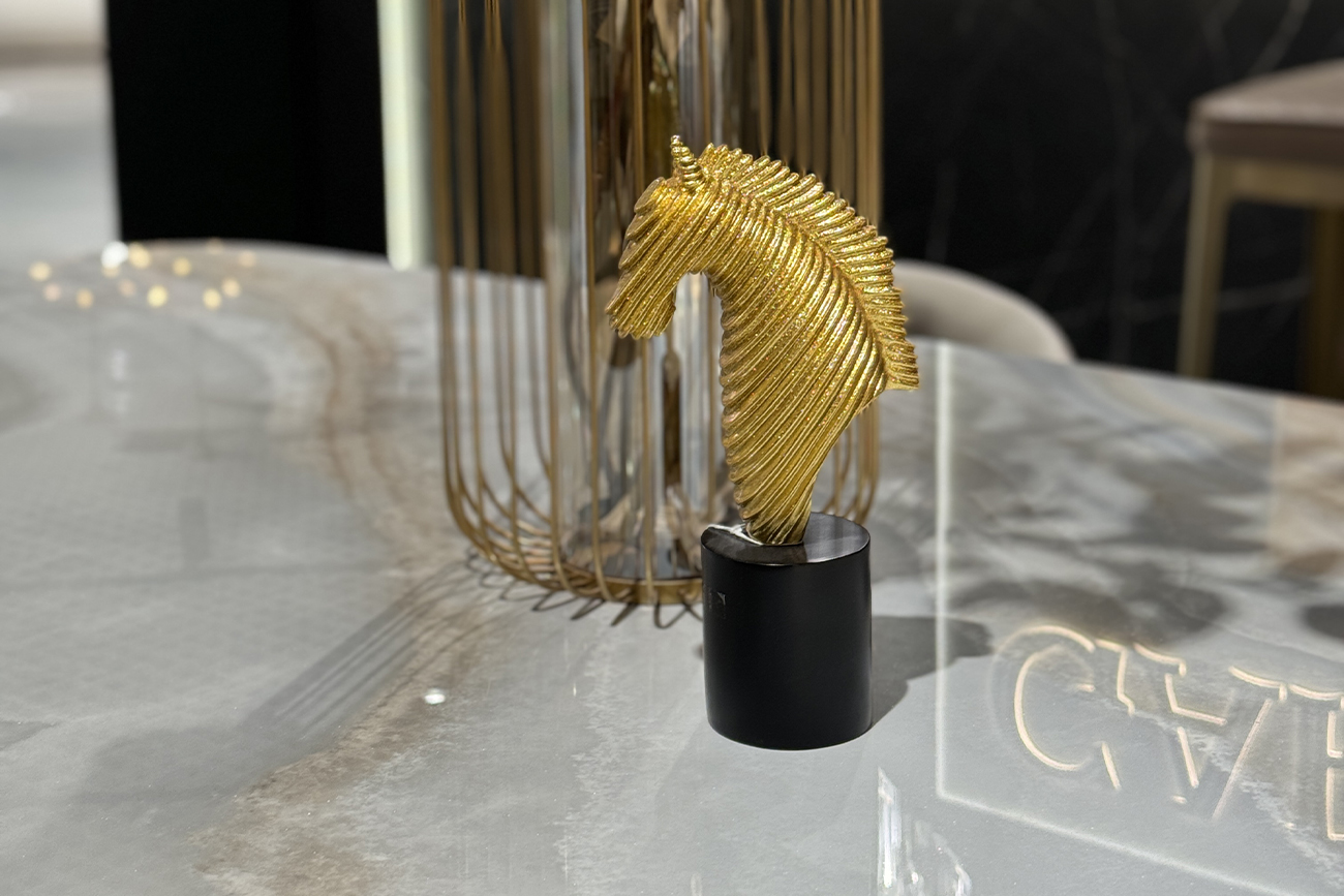 Эта золотая статуэтка "Лошадь" воплощает в себе благородную экспрессию и триумф формы, переосмысливая классическую анималистику через призму актуального минимализма. Струящийся силуэт и мягкий металлический блеск превращают объект в ключевой интерьерный акцент, способный наполнить пространство ощущением динамики и скрытой силы. Такой декор для дома идеально дополняет строгую геометрию рабочего кабинета или становится изысканной деталью в оформлении современной гостиной. Фигурка транслирует энергию успеха и движения вперед, сохраняя при этом визуальную легкость и статусность. Благодаря безупречному исполнению, эта золотая фигурка гармонично вписывается в концепции ар-деко, неоклассики или фьюжн.