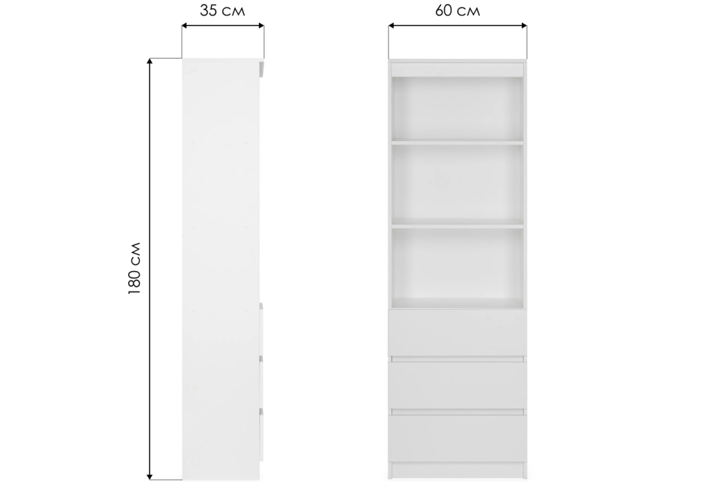 Материал каркаса - ЛДСП; Цвет каркаса - Белый; Ширина - 60; Глубина - 35; Высота - 180;
