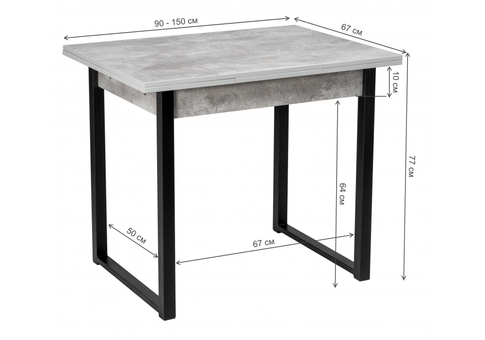 - Длина стола в разложенном виде: 1500