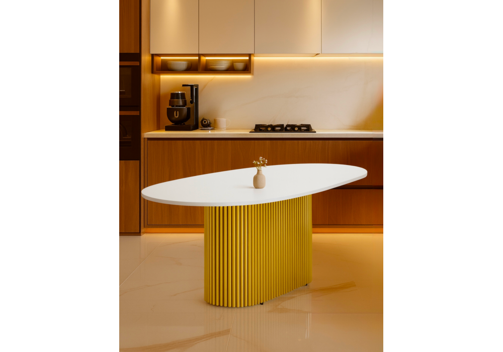 Стол деревянный Woodville Барон О 180 х 90 белая пленка шагрень / золотые ноги 620283 в Ялте