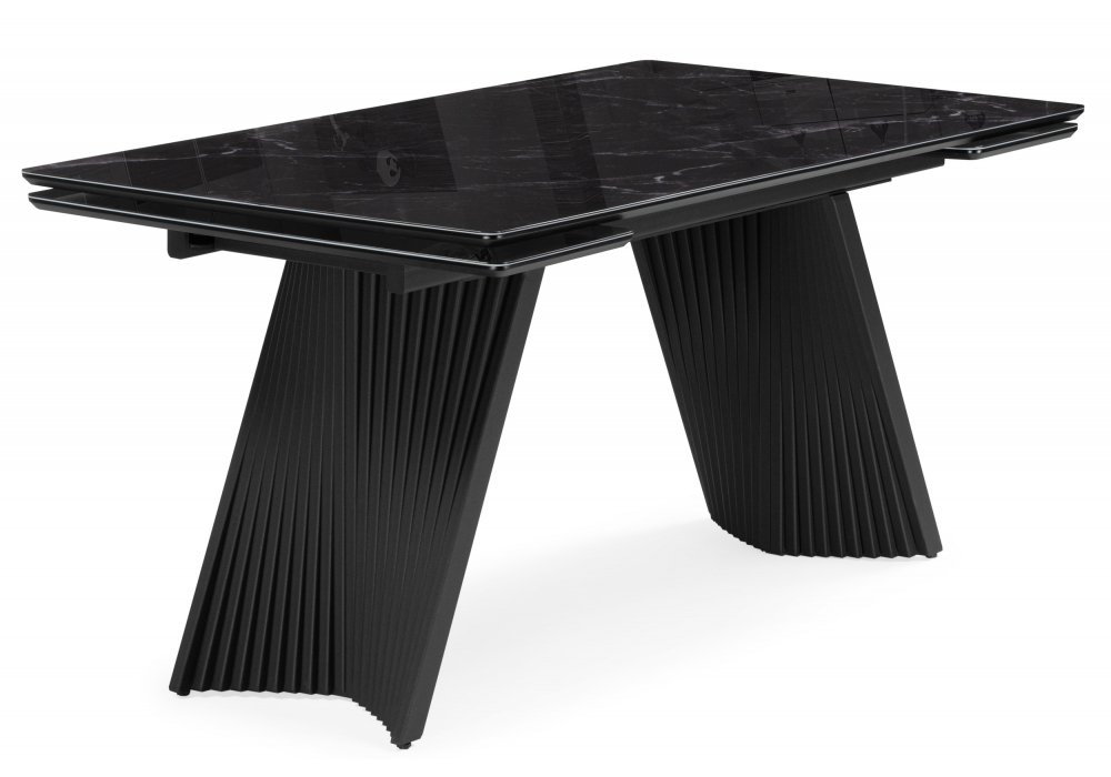 Стол стеклянный раскладной 140(200)х80 Woodville Вейв черный мрамор / черный 625995 в Ялте