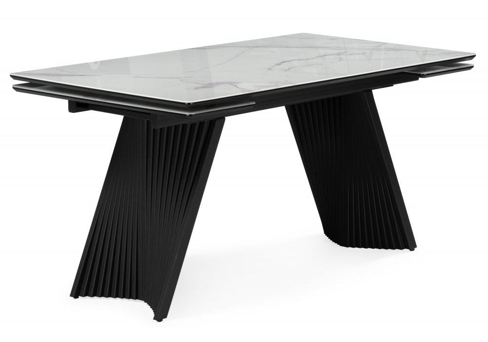 Стол стеклянный раскладной 140(200)х80 Woodville Вейв кристл белый мрамор / черный 625993 в Ялте