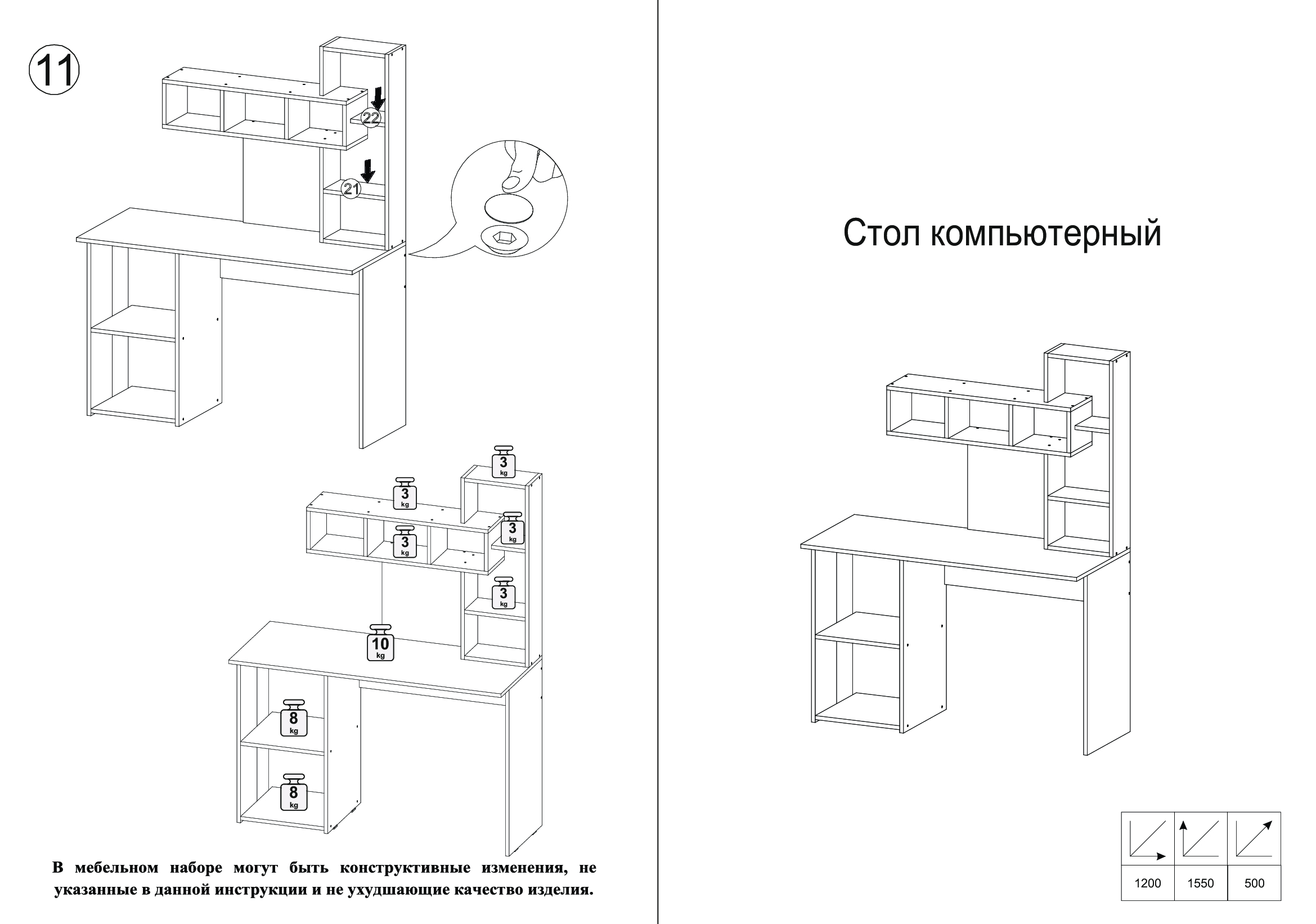 - Цвет столешницы: Белый