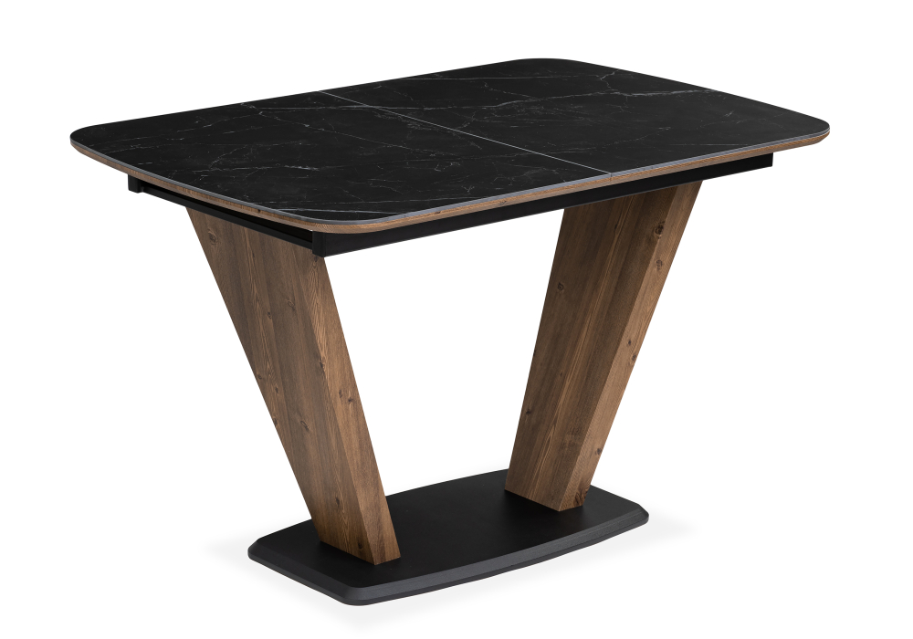 Толщина столешницы: 2,2 см. Материал каркаса - МДФ / металл; Материал ножек - МДФ / металл; Материал столешницы - Керамика / МДФ; Цвет каркаса - Орех / черный; Цвет ножек - Орех / черный; Цвет столешницы - Черный; Цвет подстолья - Орех / черный; Ширина - 80; Высота - 75; Длина стола в разложенном виде - 160; Длина - 120;