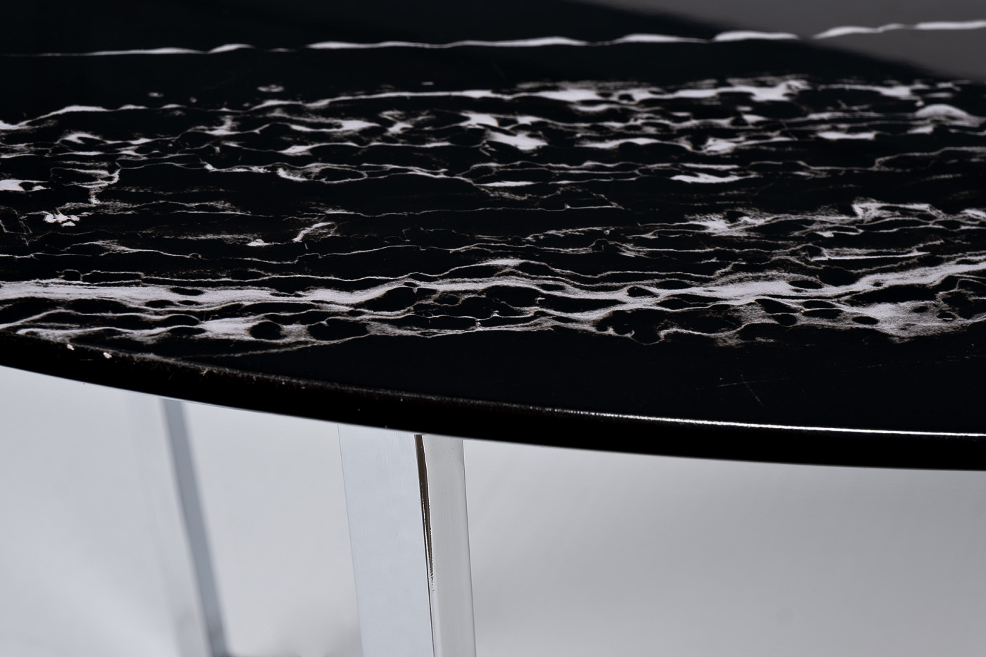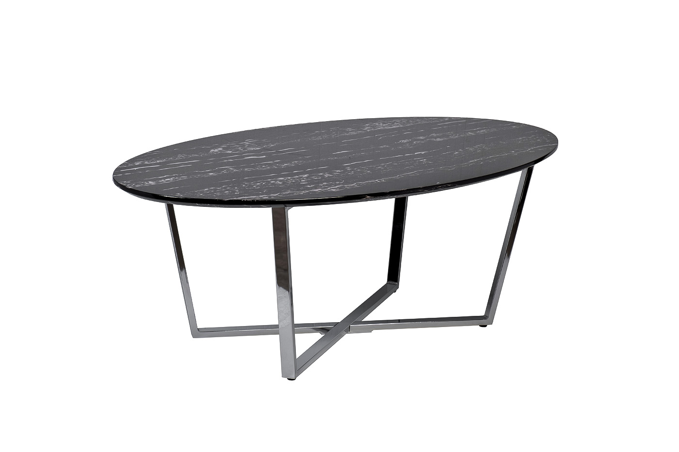 Лаконичная современная модель журнального стола станет центральным украшением вашей гостиной. Столешница мебели выполнена из качественного МДФ с полимерным покрытием для защиты от влаги и царапин. Она представлена в черно-белом оттенке с имитацией под мрамор. Ее красиво дополняют оригинальные ножки из нержавеющей стали в оттенке хром. Модель отличается стандартными размерами, поэтому ее можно располагать в гостиных средней и большой площади. А тонкие ножки оставляют много свободного пространства, визуально расширяя помещение. Приобретайте овальный журнальный столик на сайте Garda Decor, чтобы придать дому уюта, комфорта и уникального стиля. Толщина столешницы - 20мм. Модель данной серии сочетается со столом 30B-85521.