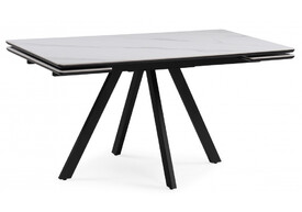 Керамический стол раскладной Woodville Норман 140(200)х80х75 белый мрамор alpin white / черный 612197