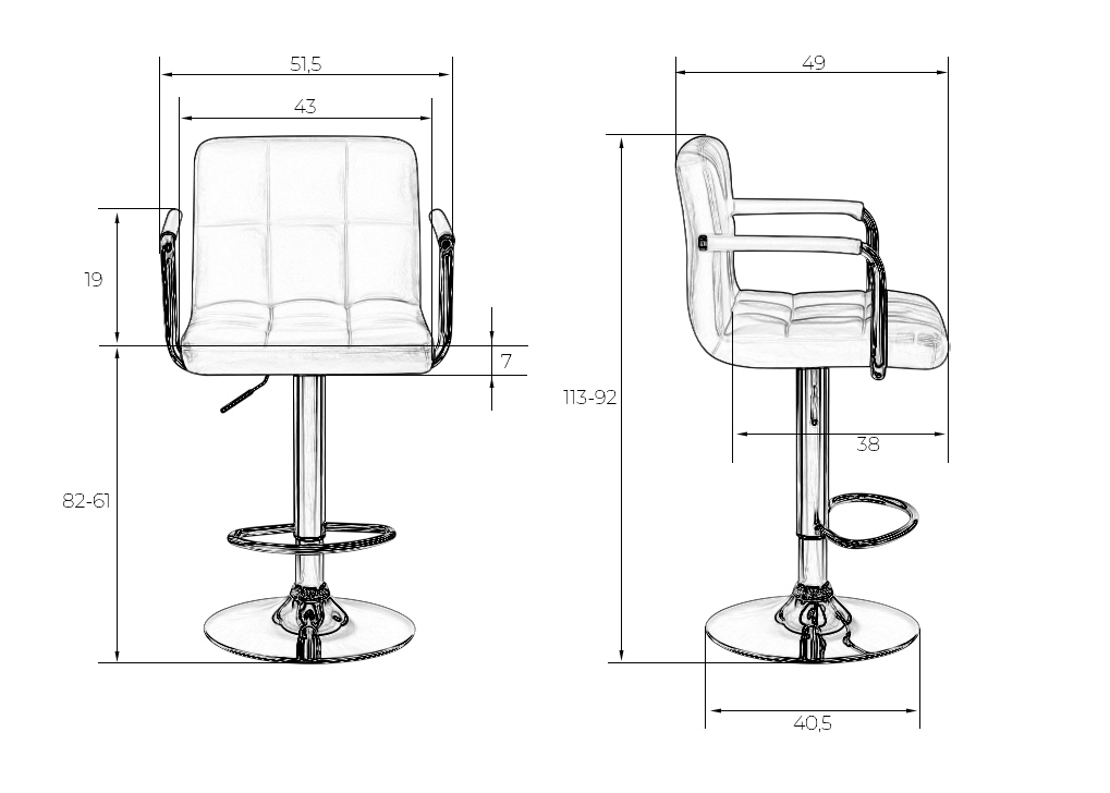 - Высота сиденья max: 820