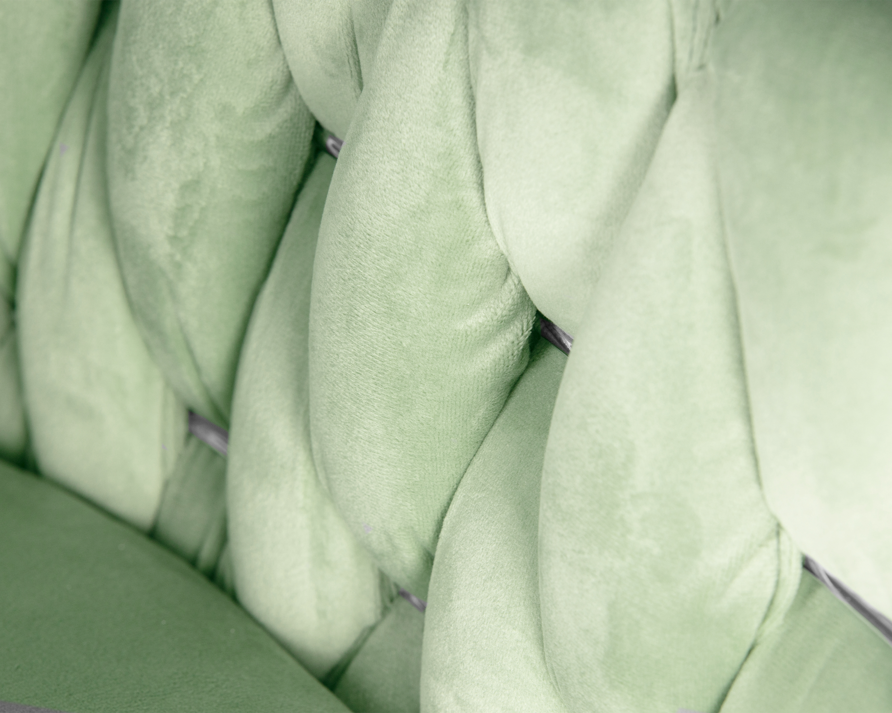 - Цвет сиденья: пудрово-мятный велюр