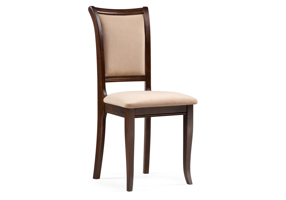 Материал каркаса - Массив бука; Материал сиденья - Велюр; Материал ножек - Массив бука; Материал обивки - Велюр; Цвет каркаса - Орех; Цвет сиденья - Бежевый; Цвет ножек - Орех; Цвет обивки - Бежевый; Ширина - 45; Глубина - 55; Высота - 94; Ширина сиденья - 40; Глубина сиденья - 42; Высота сиденья - 49;