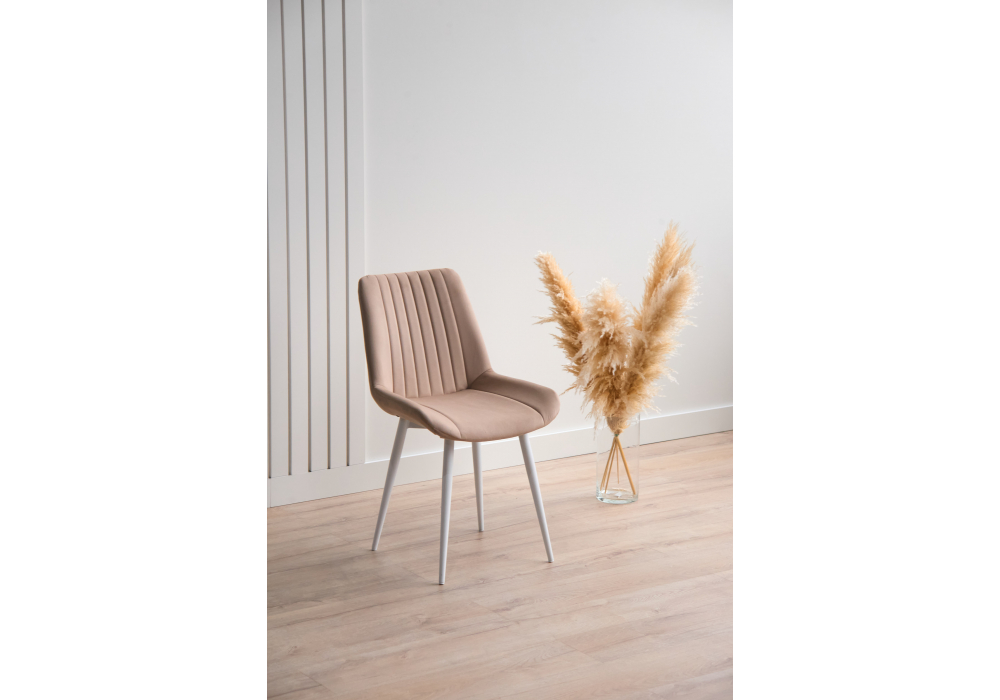 Материал каркаса - металл; Материал сиденья - велюр; Материал обивки - велюр; Цвет ножек - белый; Ширина - 50; Глубина - 56; Высота - 82; Ширина сиденья - 47; Глубина сиденья - 42; Высота сиденья - 48;