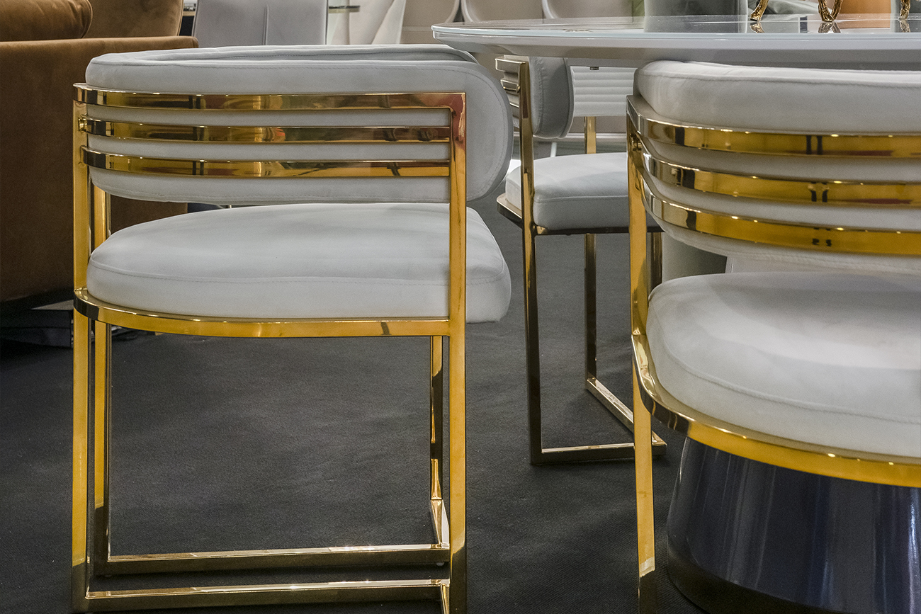 Велюровый стул на металлическом каркасе – воплощение стилистики ар-деко. Прочный благородный металл в компании с нежным аристократичным велюром. Тандем, который придает интерьеру изысканности и индивидуальности. Понятная геометрия линий, продуманная эргономика, отсутствие лишнего декора, безупречное качество – все это делает данный велюровый стул эффектным дополнением практически к любому обеденному столу из нашего каталога.