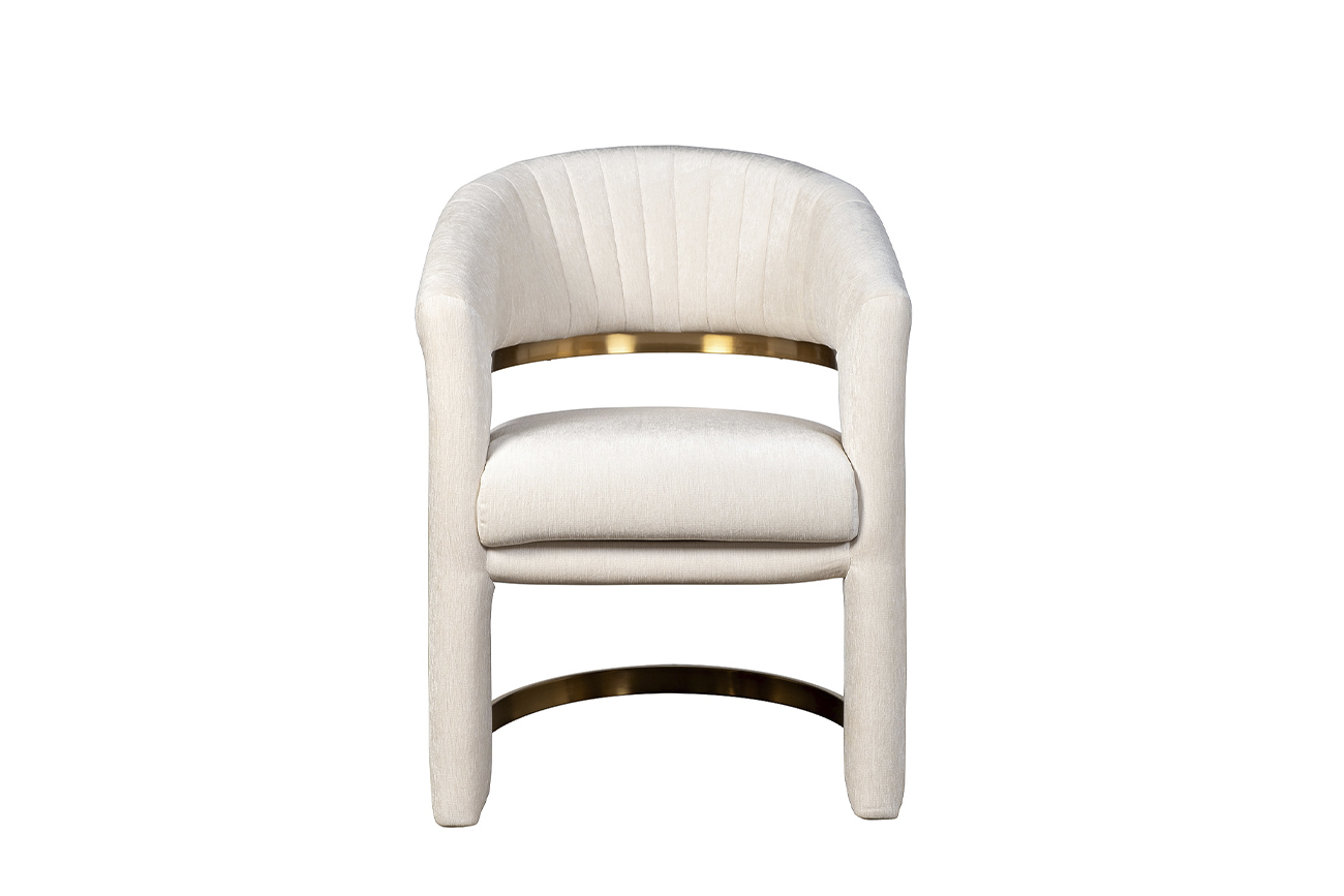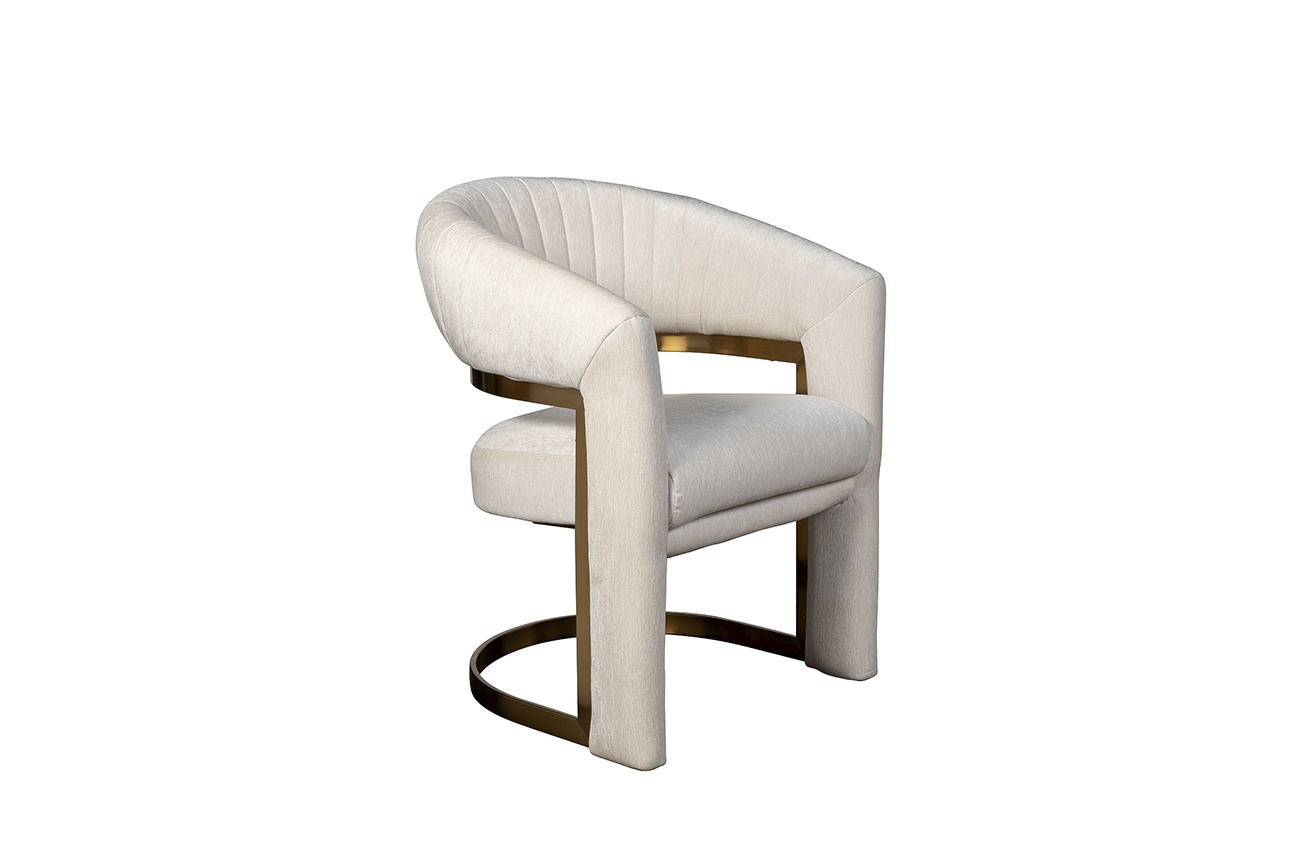 Элегантный стул с акцентной латунной вставкой — воплощение утончённого вкуса и интерьерной гармонии. Мягкая обивка цвета шампанского подчёркивает изогнутые формы, вдохновлённые ар-деко, а округлая спинка с деликатной простёжкой создаёт обеспечивает эстети...