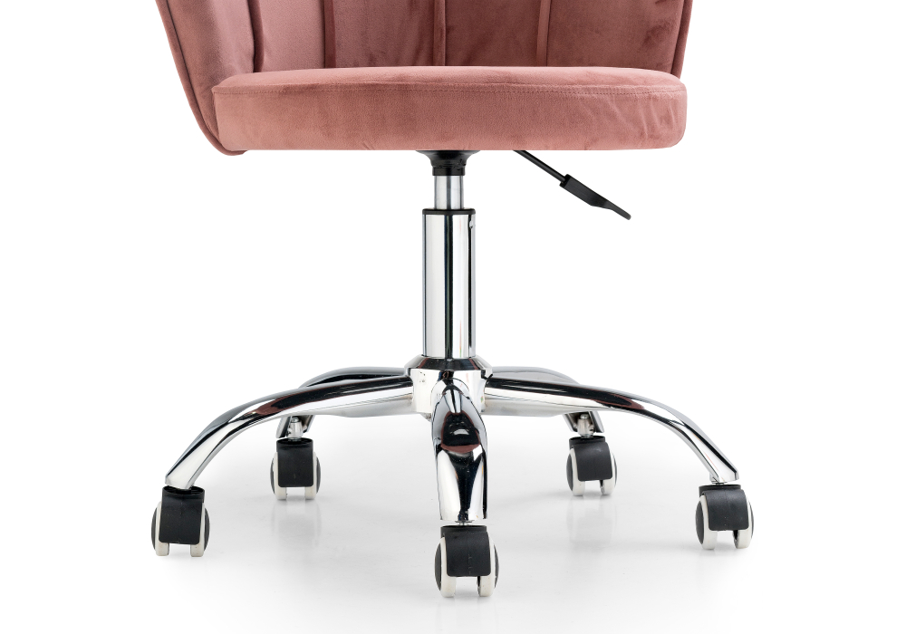 Материал каркаса - Хромированный металл; Материал сиденья - Велюр; Материал ножек - Хромированный металл; Материал обивки - Велюр; Цвет каркаса - Хромированный металл; Цвет сиденья - Розовый; Цвет ножек - Хромированный металл; Цвет обивки - Розовый; Ширина - 56; Глубина - 54; Высота - 70; Ширина сиденья - 40; Глубина сиденья - 40; Высота сиденья - 42; Высота сиденья максимальная - 55; Высота максимальная - 83;