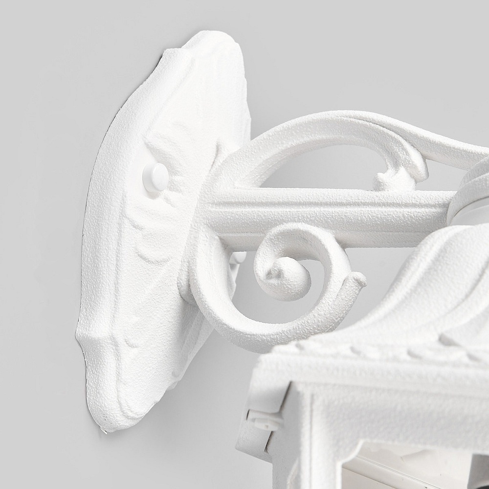 Светильники уличные настенные FUMAGALLI серии RUT, модель RUT/BISSO. Консольный уличный светильник для монтажа на стену. Настенный кронштейн BISSO малого размера и светильник RUT. Монтаж фонаря "вверх". Используются для фасадного и архитектурного освещения в стиле "классика". Место установки уличных светильников - фасады, колонны и другие вертикальные поверхности исторических зданий, котеджей, загородных домов, церквей, а так же, другие места где требуется и возможна установка фонарей. Изготовлены в Италии, по уникальным технологиям "FUMAGALLI" из современного композитного полимера RESIN. Этот материал в 5 раз прочнее металла, не ржавеет, не окисляется, не выгорает на солнце, его не нужно красить. Все светильники пыле-влаго защищены по стандарту IP55 (Пылезащищенные, защита от водяных струй с любого направления). Рассеиватель выполнен из антивандального, не мутнеющего и не горючего PMMA (ПолиМетилМетаАкрилат). Срок службы светильника - не менее 20 лет. Температура использования от -60 до +90. В серии RUT есть фонари в настенном (BISSO/ RUT, OFIR/ RUT, MIRRA/ RUT, PORPORA/ RUT) подвесном (SICHEM/ RUT) и наземном исполнении (MINILOT/ RUT, MIZAR.R/ RUT, IAFAET.R/ RUT, ALOE.R/ RUT, ARTU/ RUT, GIGI/ RUT, RICU/ RUT, RICU/ISSO/ RUT 2L, NEBO/ RUT, NEBO OFIR/ RUT 2L, NEBO OFIR/ RUT 3L) со столбами разной высоты, с разным количеством и конфигурацией голов. Консоли настенных фонарей и кронштейны светильников на столбах освщения могут устанавливаться вверх/вниз. Столбы выше 150 см имеют в основе мощную стальную трубу с двойной оцинковкой. При заказе требуется выбрать цвет корпуса, цвет плафона и тип патрона. По стилю и дизайну серия уличных светильников RUT похожа на светильники малого размера серии ANNA и на светильники большого размера серии NOEMI. По размеру RUT относится к средним светильникам как серия CEFA, SALEM и GLOBE 300.
