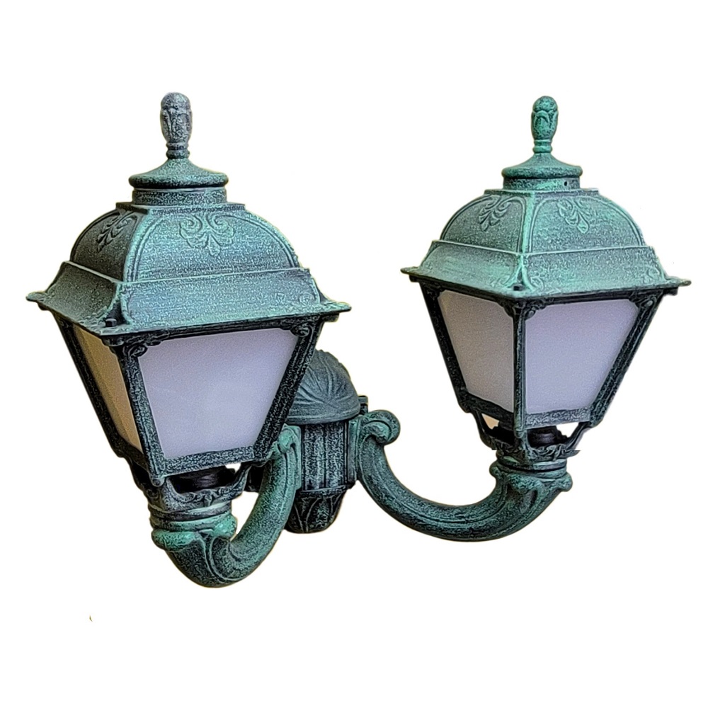 Светильники уличные настенные FUMAGALLI серии CEFA, модель MIRRA/CEFA. Консольный уличный светильник из 2-х фонарей CEFA, на кронштейнах MIRRA среднего размера, для монтажа на стену. Монтаж консолей только "вверх". Используются для фасадного и архитектурного освещения в стиле "классика". Место установки уличных светильников - фасады, колонны и другие вертикальные поверхности исторических зданий, котеджей, загородных домов, церквей, а так же, другие места где требуется и возможна установка фонарей. Изготовлены в Италии, по уникальным технологиям "FUMAGALLI" из современного композитного полимера RESIN. Этот материал в 5 раз прочнее металла, не ржавеет, не окисляется, не выгорает на солнце, его не нужно красить. Все светильники пыле-влаго защищены по стандарту IP55 (Пылезащищенные, защита от водяных струй с любого направления). Рассеиватель выполнен из антивандального, не мутнеющего и не горючего PMMA (ПолиМетилМетаАкрилат). Срок службы светильника - не менее 20 лет. Температура использования от -60 до +90.В серии CEFA есть фонари в настенном (BISSO/CEFA, OFIR/CEFA, MIRRA/CEFA, PORPORA/CEFA) подвесном (SICHEM/CEFA) и наземном исполнении (MINILOT/CEFA, MIZAR.R/CEFA, IAFAET.R/CEFA, ALOE.R/CEFA, ARTU/CEFA, GIGI/CEFA, RICU/CEFA, RICU/ISSO/CEFA 2L, NEBO/CEFA, NEBO OFIR/CEFA 2L, NEBO OFIR/CEFA 3L) со столбами разной высоты, с разным количеством и конфигурацией голов. Консоли настенных фонарей и кронштейны светильников на столбах освщения могут устанавливаться вверх/вниз. Столбы выше 150 см имеют в основе мощную стальную трубу с двойной оцинковкой. При заказе требуется выбрать цвет корпуса, цвет плафона и тип патрона. По стилю и дизайну серия уличных светильников CEFA похожа на светильники большого размера SIMON и на светильники очень большого размера (Гранд) PIETRO. По размеру CEFA относится к средним светильникам как серия RUT, SALEM и GLOBE 300.