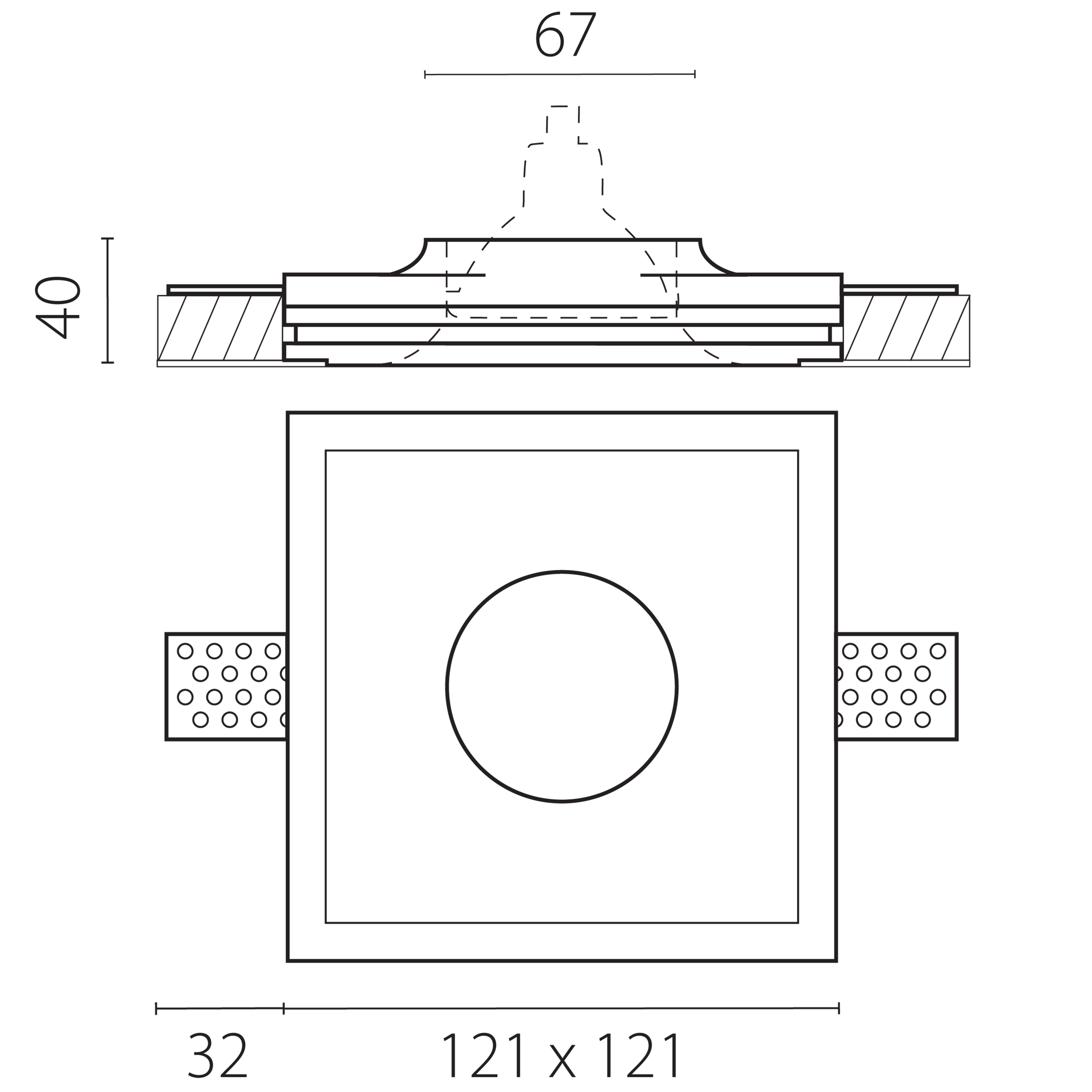 - Форма плафона: Квадратный