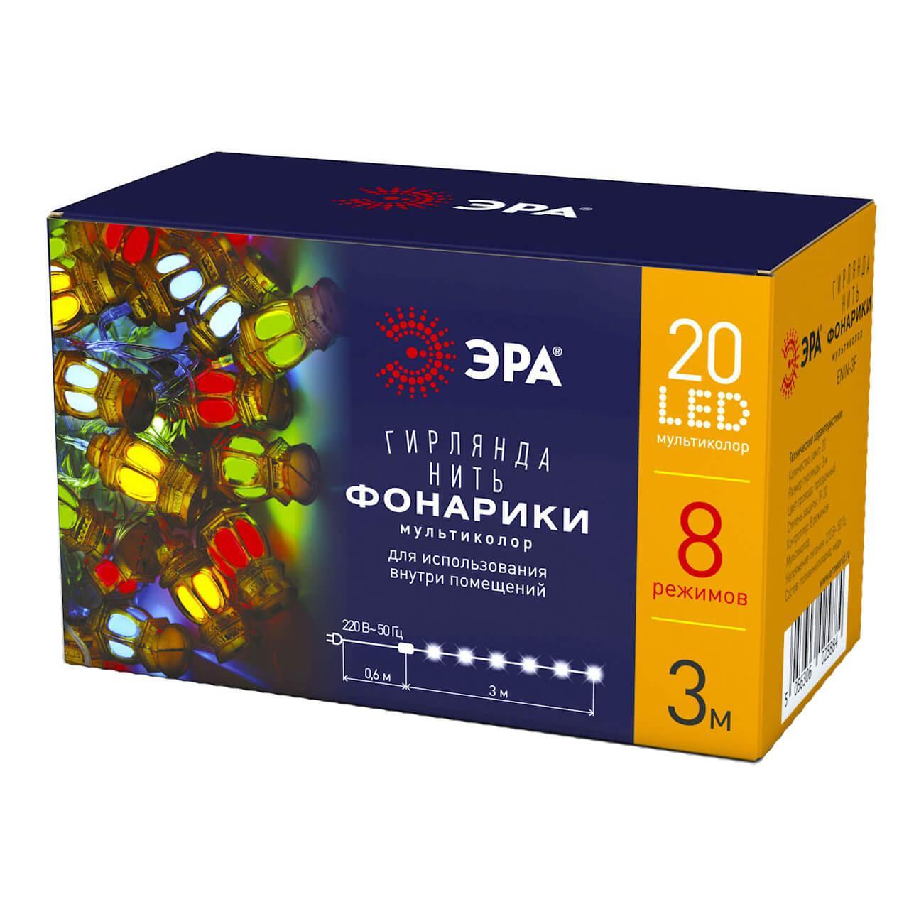 Купить "Светодиодная гирлянда ЭРА нить 220V разноцветный ENIN-3F Б0041897"