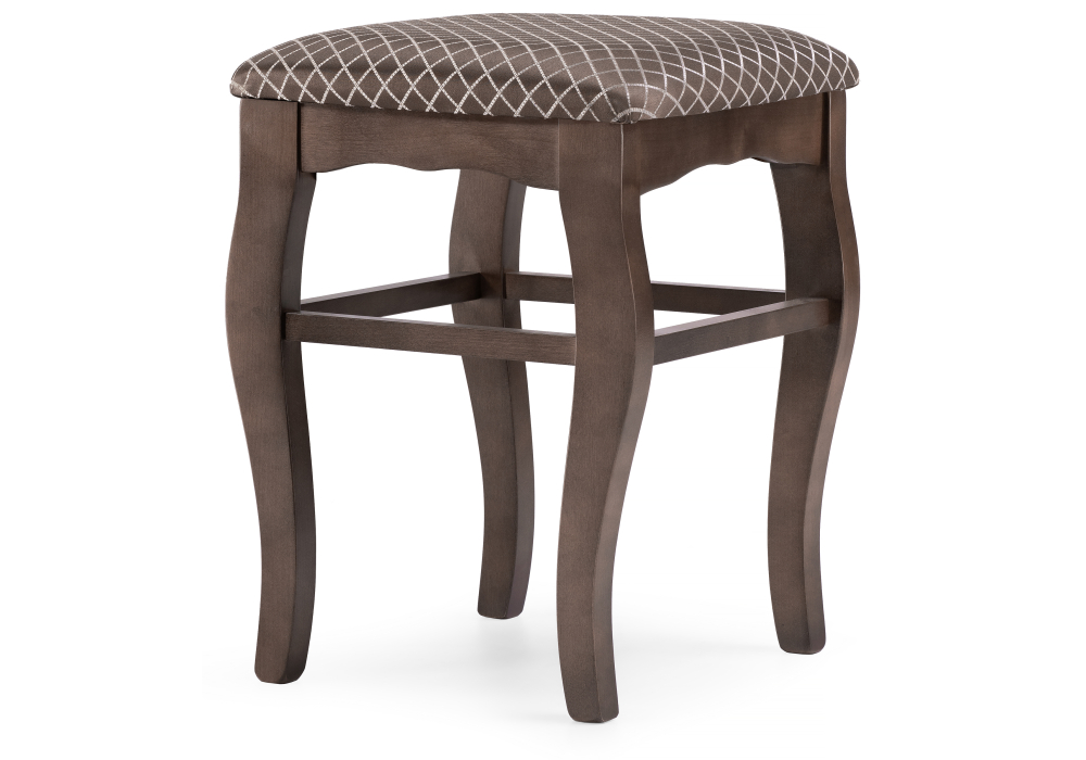 Материал каркаса - Массив березы; Материал сиденья - Ткань; Материал ножек - Массив березы; Материал обивки - Ткань; Цвет каркаса - Орех; Цвет сиденья - Коричневый; Цвет ножек - Орех; Цвет обивки - Коричневый; Ширина - 35; Глубина - 35; Высота - 45;