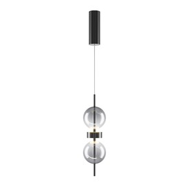Серия включает подвесной светильник, бра, напольный и портативную модели. Стеклянные плафоны с зеркальным градиентом, черная глянцевая арматура из металла. LED-источник (3000K) скрыт матовым рассеивателем. Конструктивные особенности: магнитные потолочные чаши у подвесов и магнитное основание у бра обеспечивают монтаж без видимого крепежа. Напольный и аккумуляторный светильники диммируются при длительном удержании кнопки. Серия отмечена премиями Red Dot и A’design за инновационный дизайн.