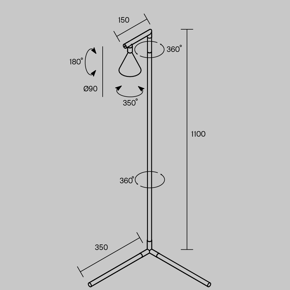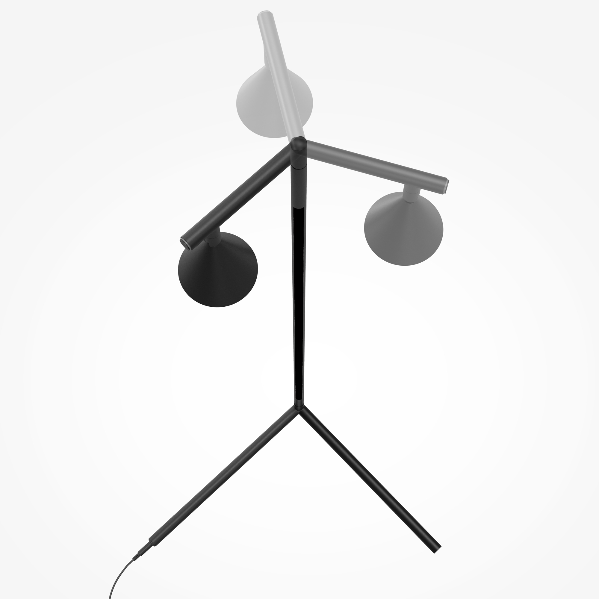 Напольный торшер с двумя источниками света. Основной элемент — черный матовый вертикальный рассеиватель со скрытой лентой для переотраженного освещения. Поворотный спот с направленным светом (угол 36°) для точечного освещения. Оба элемента вращаются вокруг оси на 360°. LED-источники с температурой 3000K и высоким индексом цветопередачи CRI 90. Функция диммирования. Корпус из алюминия с черным антибликовым покрытием. Для современных интерьеров, обеспечивает как общее, так и акцентное освещение.