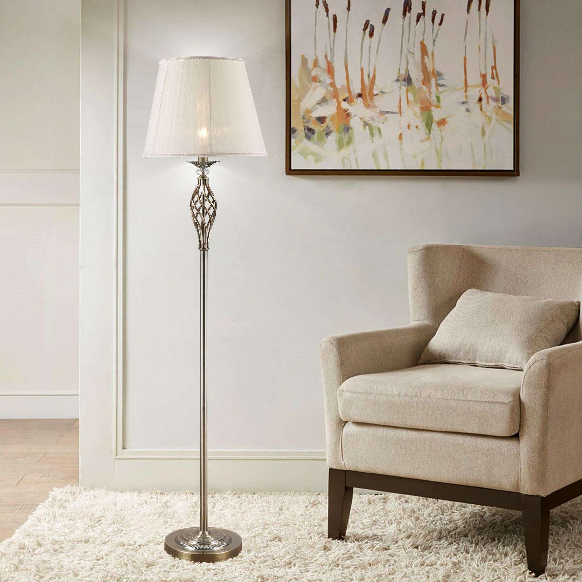 Торшер с тканевым абажуром 01003/1 в цвете античная бронза-это стильный элемент светового дизайна в современных и классических интерьерах. Эффектный торшер со сменной лампой E14 поможет создать качественное дополнительное освещение на площади 3 м² и станет роскошным украшением вашей спальни или гостиной.