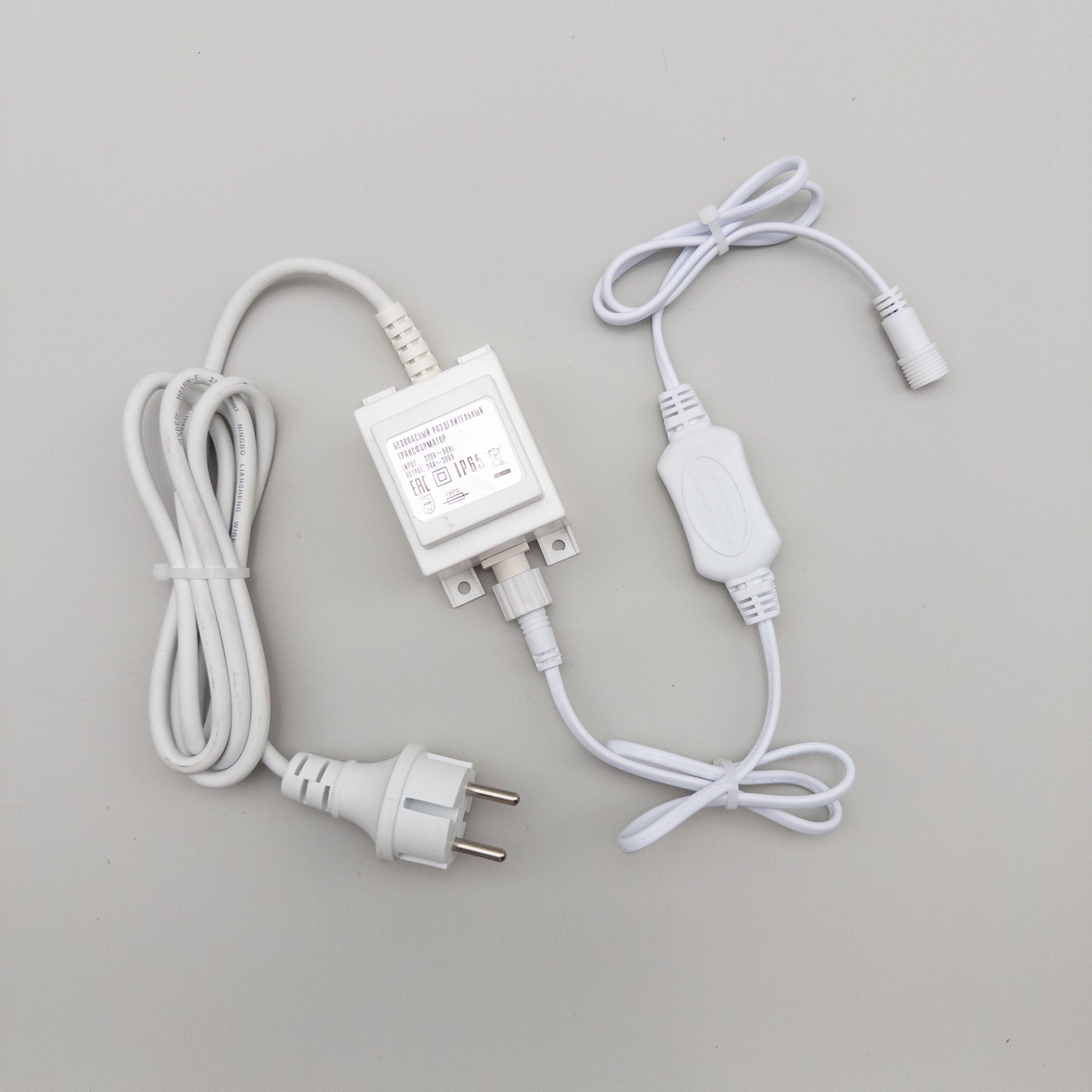 Трансформатор 30W с Выпрямителем для Нитей 24В, до 600 LED, Провод Белый Каучук, IP65 LTC PTR30-3A-W в Ялте