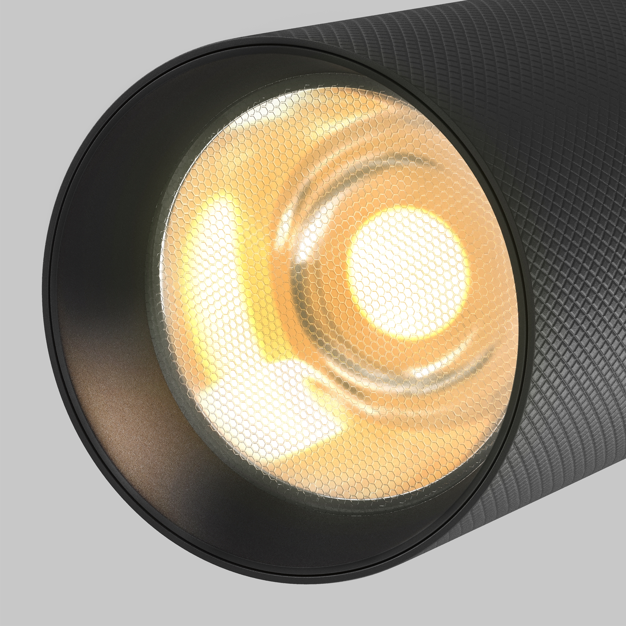 Алюминиевый корпус, цвета – черный, белый, матовой золото. Графичная фактура цилиндрических плафонов с рисунком в виде ромбиков. LED-источник света. Цветовая температура на выбор 3000К и 4000 К. Угол рассеивания 36° для акцентной подсветки. Утопленный источник света обеспечивает визуальный комфорт для глаз, а антибликовый фильтр HoneyComb-D38 - низкий коэффициент слепимости. Поворотный механизм в двух плоскостях: вокруг своей оси с поворотом на 355 градусов и горизонтальной плоскости с наклоном на 90 градусов. Совместимы с комплектующими от серии Focus Led (приобретаются отдельно) - сменные линзы с углом рассеивания 15, 24, 50 градусов, кольца в двух цветах и матовые рассеиватели.