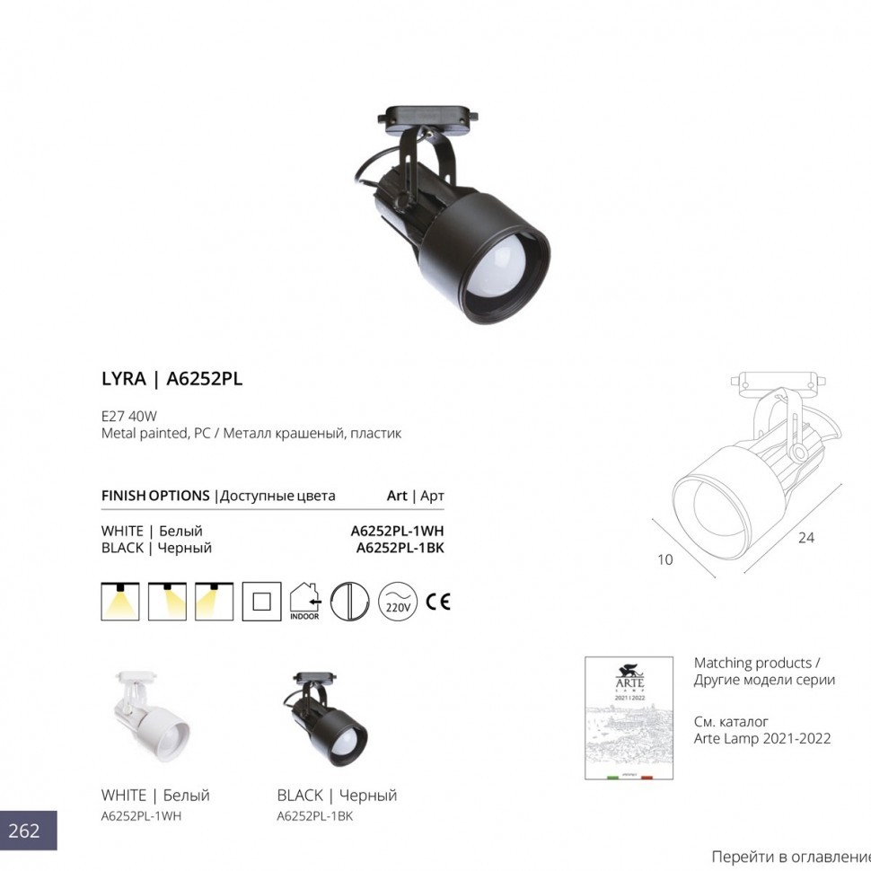Трековый однофазный светильник Arte Lamp A6252PL-1BK в Ялте
