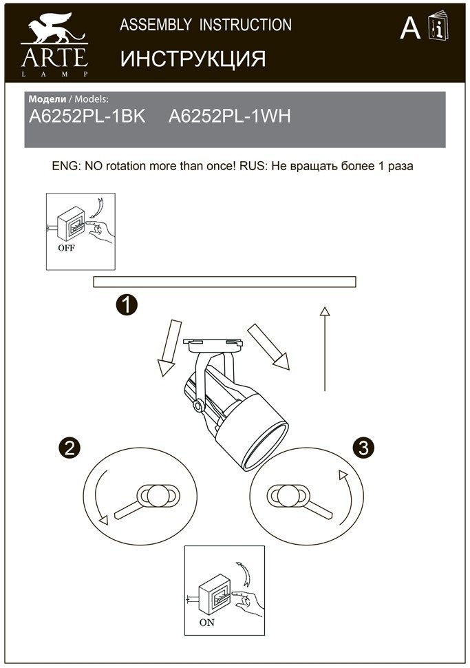 Купить "Трековый однофазный светильник Arte Lamp A6252PL-1BK"