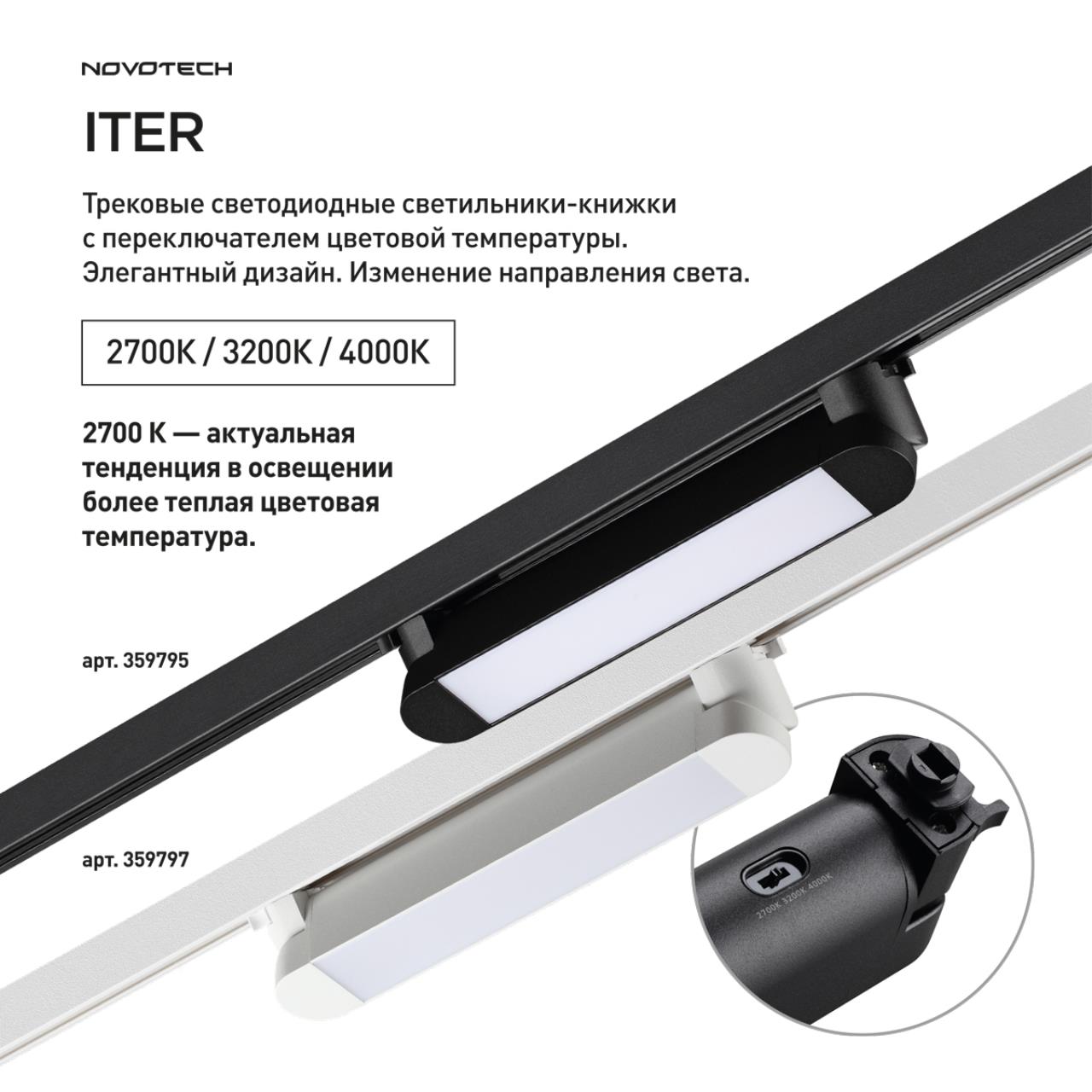 Купить "Трековый светильник однофазный трехжильный с переключателем температуры Novotech ITER 359797 белый"
