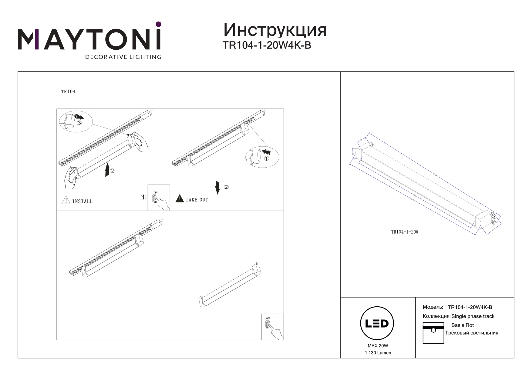 Все характеристики TR104-1-20W4K-B