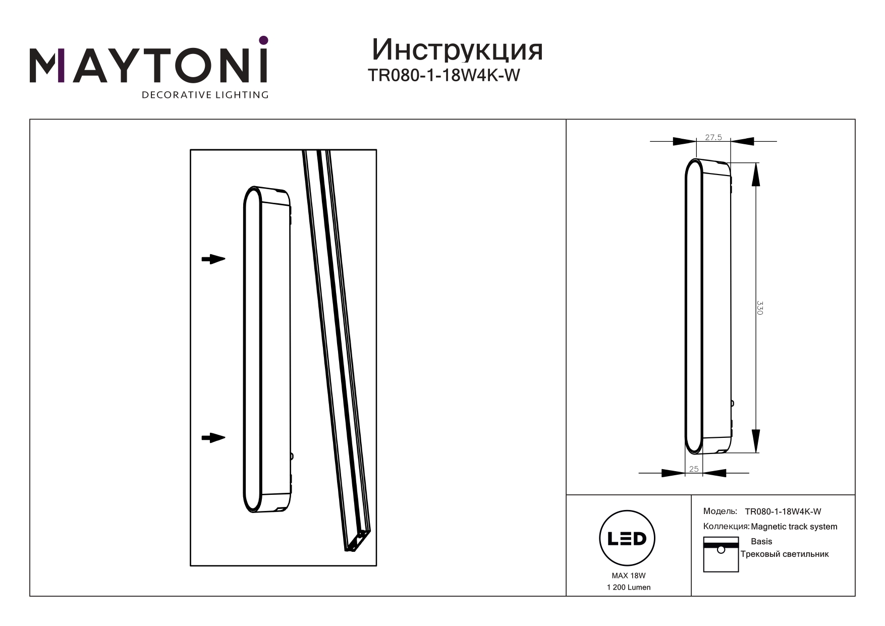 Трековый магнитный светильник Maytoni Basis TR080-1-18W4K-W в Ялте