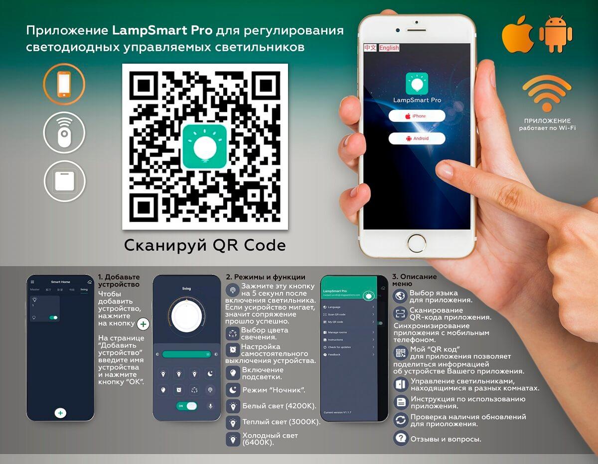 - Режим работы: Регулировка яркости свечения, Регулировка цветовой температуры