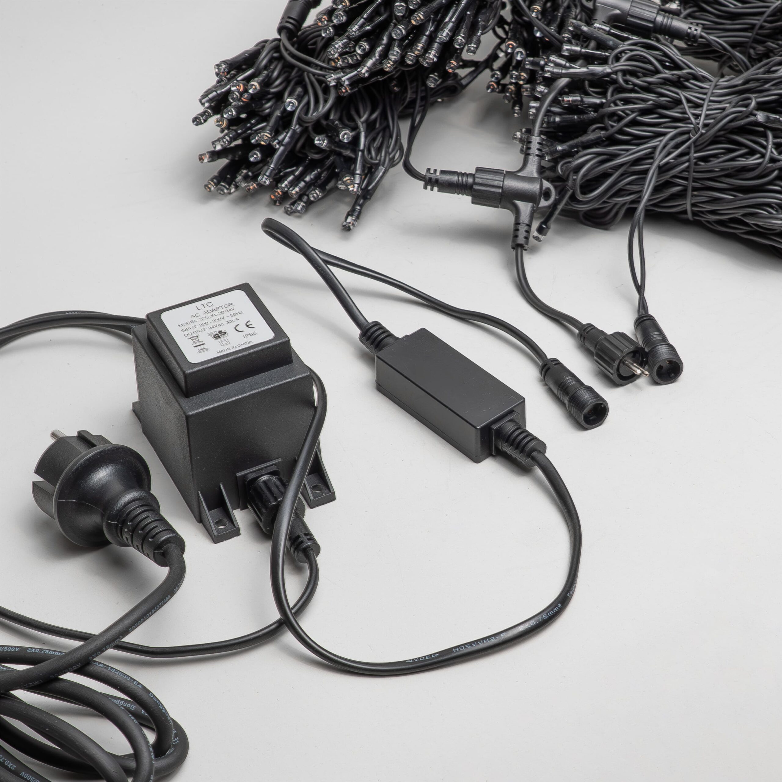 Купить "Комплект 3 Разноцветных Нити по 20м с Мерцанием Белого Диода, 600 LED, Провод Черный Каучук 2,3мм, IP54 LTC ECO600BLW-11-1M"