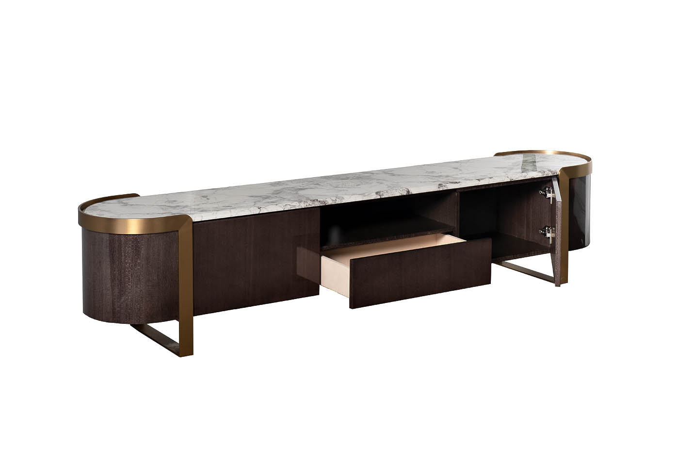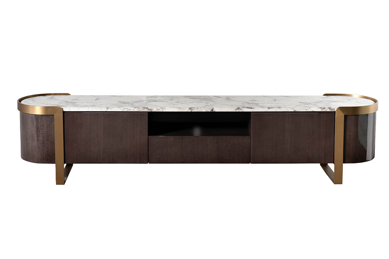 Современная тумба под телевизор из коллекции Sevilla - практичное решение для удобного и лаконичного размещения домашней техники в гостиной или спальне. Длинная тумба в современном стиле разместит на себе современные модели TV и аксессуары к нему. Мебель оснащена специальными ящиками, в которых удобно хранить комплектующие бытовой техники или другие необходимые мелочи. Тумба создана в изысканных дымчато-серых тонах и объединила в себе последние тенденции мебельного дизайна. Отделка выполнена из современных материалов с использованием шпона древесных пород, а столешница имитирует мраморное покрытие, что делает тумбу под телевизор еще более элегантной.