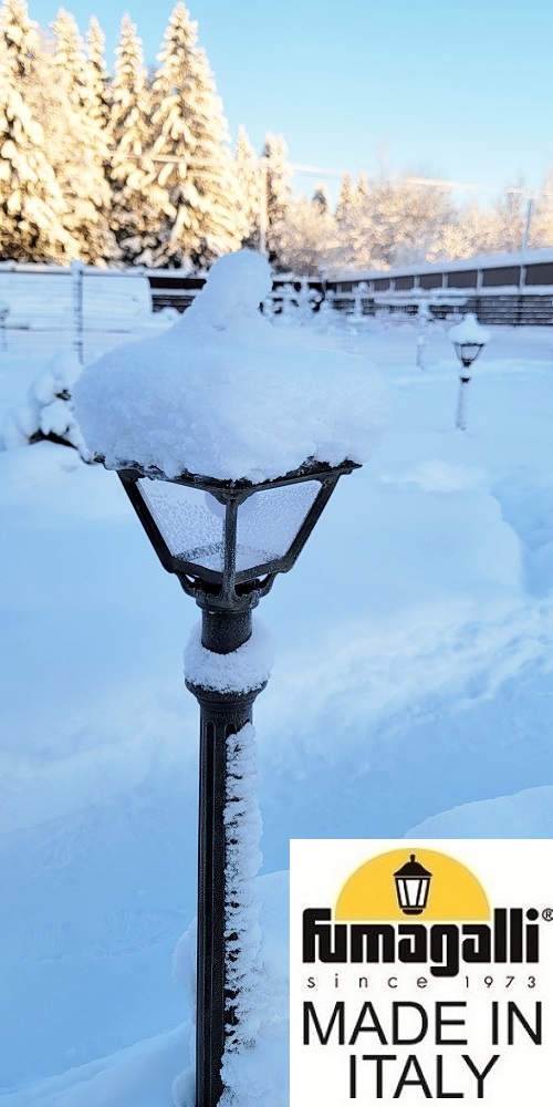 Уличные фонари на столб FUMAGALLI серии CEFA, модель CEFA. Только фонарь (голова), посадочный диаметр D=60мм., устанавливаются на столб или трубу соответствующего диаметра. Используются для архитектурного и ландшафтного освещения в стиле "классика". Место установки уличных светильников - опоры освещения, столбы заборов, ландшафтные композиции в парках и скверах. Изготовлены в Италии, по уникальным технологиям "FUMAGALLI" из современного композитного полимера RESIN. Этот материал в 5 раз прочнее металла, не ржавеет, не окисляется, не выгорает на солнце, его не нужно красить. Все светильники пыле-влаго защищены по стандарту IP55 (Пылезащищенные, защита от водяных струй с любого направления). Рассеиватель выполнен из антивандального, не мутнеющего и не горючего PMMA (ПолиМетилМетаАкрилат). Срок службы светильника - не менее 20 лет. Температура использования от -60 до +90. В серии CEFA есть фонари в настенном (BISSO/CEFA, OFIR/CEFA, MIRRA/CEFA, PORPORA/CEFA) подвесном (SICHEM/CEFA) и наземном исполнении (MINILOT/CEFA, MIZAR.R/CEFA, IAFAET.R/CEFA, ALOE.R/CEFA, ARTU/CEFA, GIGI/CEFA, RICU/CEFA, RICU/ISSO/CEFA 2L, NEBO/CEFA, NEBO OFIR/CEFA 2L, NEBO OFIR/CEFA 3L) со столбами разной высоты, с разным количеством и конфигурацией голов. Консоли настенных фонарей и кронштейны светильников на столбах освщения могут устанавливаться вверх/вниз. Столбы выше 150 см имеют в основе мощную стальную трубу с двойной оцинковкой. При заказе требуется выбрать цвет корпуса, цвет плафона и тип патрона. По стилю и дизайну серия уличных светильников CEFA похожа на светильники большого размера SIMON и на светильники очень большого размера (Гранд) PIETRO. По размеру CEFA относится к средним светильникам как серия RUT, SALEM и GLOBE 300.