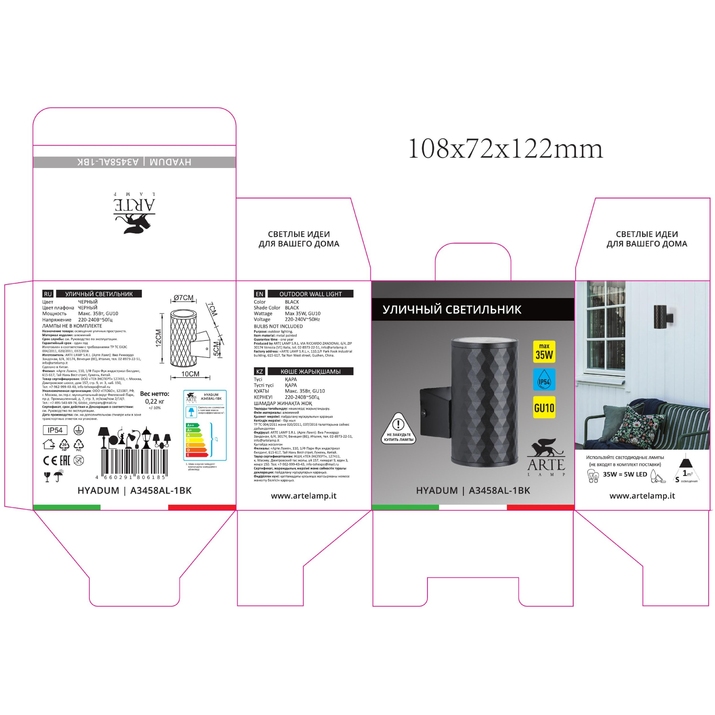 Купить "Уличный настенный светильник Arte Lamp Hyadum A3458AL-1BK"