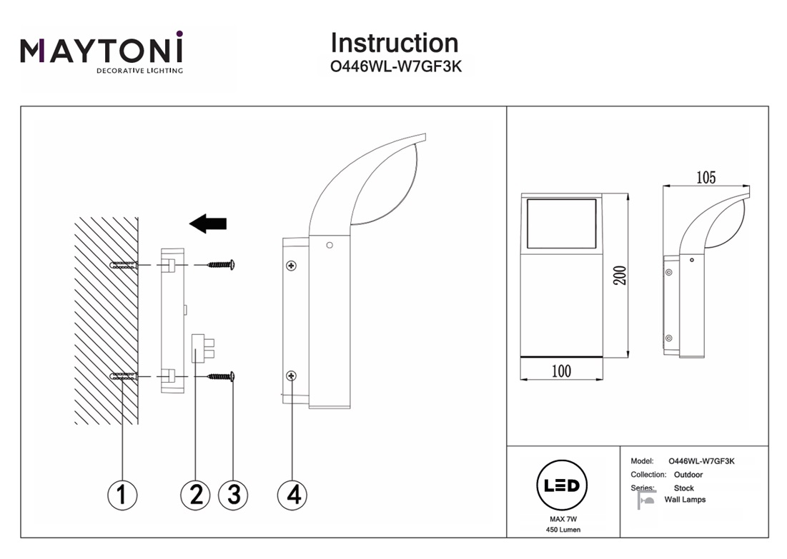 Уличный настенный светодиодный светильник Maytoni Stock O446WL-L7GF3K — это не просто источник света, а элемент декора, способный преобразить ваше пространство. Не упустите возможность сделать ваш дом ярче и безопаснее с помощью этого качественного и привлекательного освещения. Данную модель O446WL-L7GF3KSR можете купить в интернет-магазине 220svet.