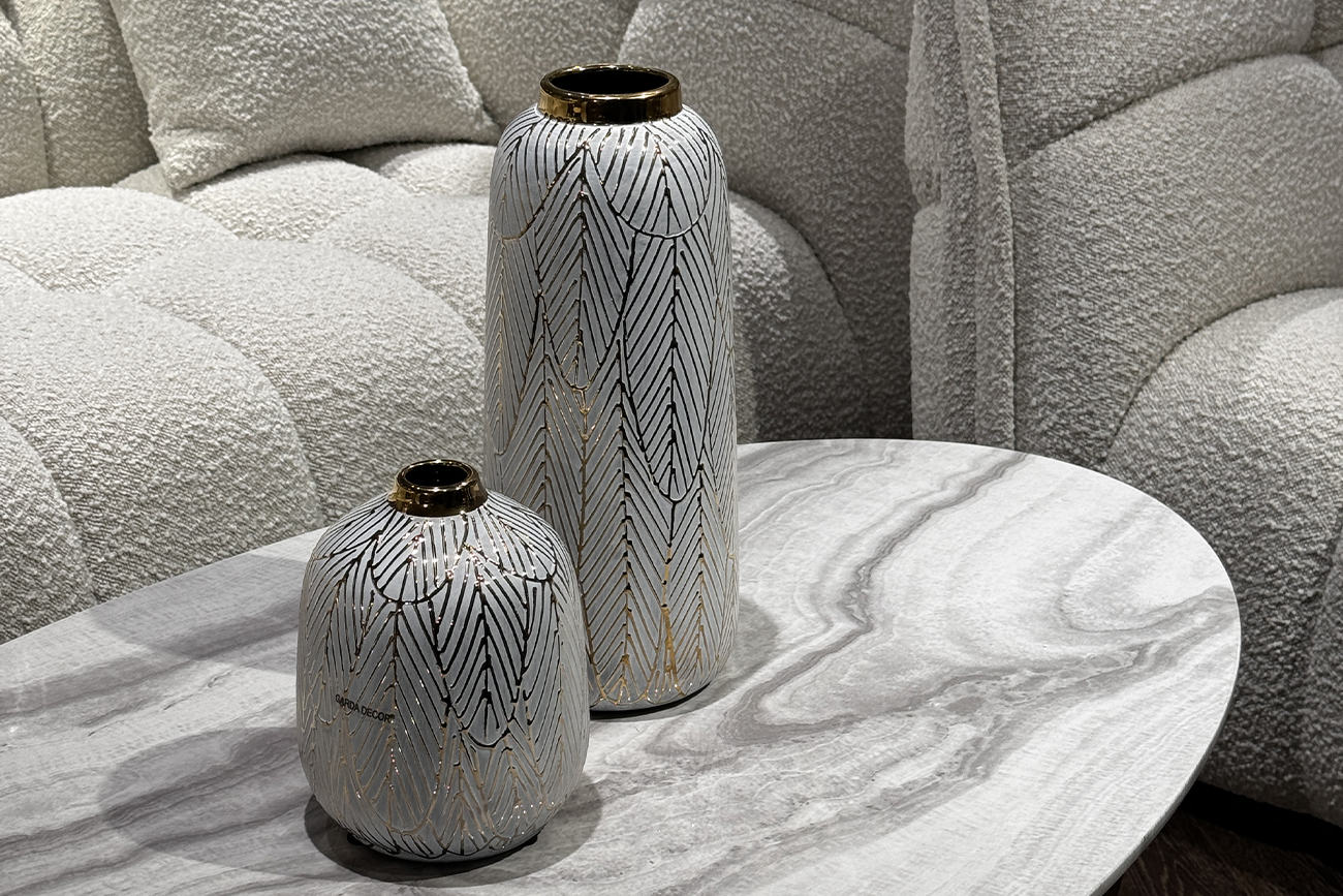 Керамическая ваза с золотым принтом никогда не будет обделена вниманием – она с легкостью займет центральную позицию в интерьере. Красивая, стильная, роскошная, но при этом элегантная. Она заставляет интерьер выглядеть дороже, интереснее. При чем этот эффект можно контролировать самостоятельно – оставлять вазу единственным акцентом или дополнять ее зеркалом в золотой раме, подсвечниками и прочими аксессуарами с блеском золота. Хотите добавить немного элегантной роскоши и шика обстановке - купите эту вазу с золотым декором. Она ассоциируется с процветанием и благополучием, станет ярким украшением вашего интерьера или памятным подарком.