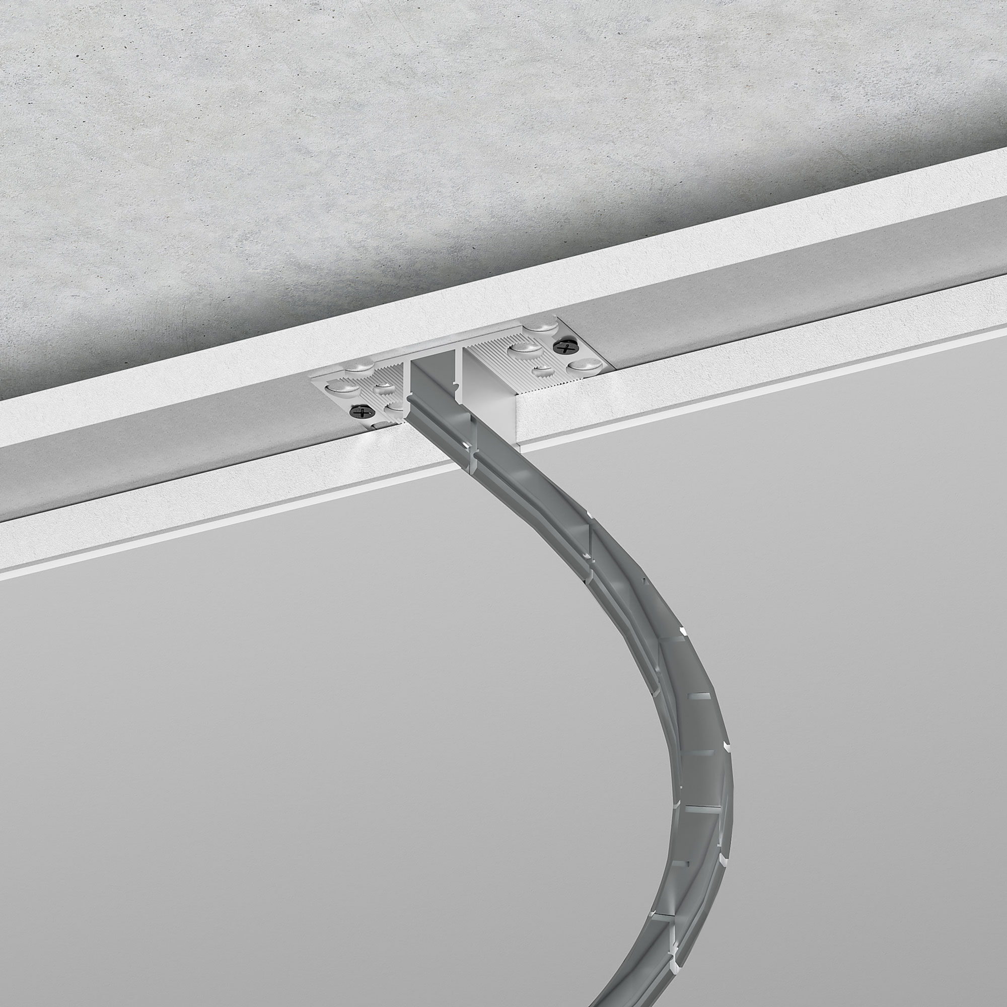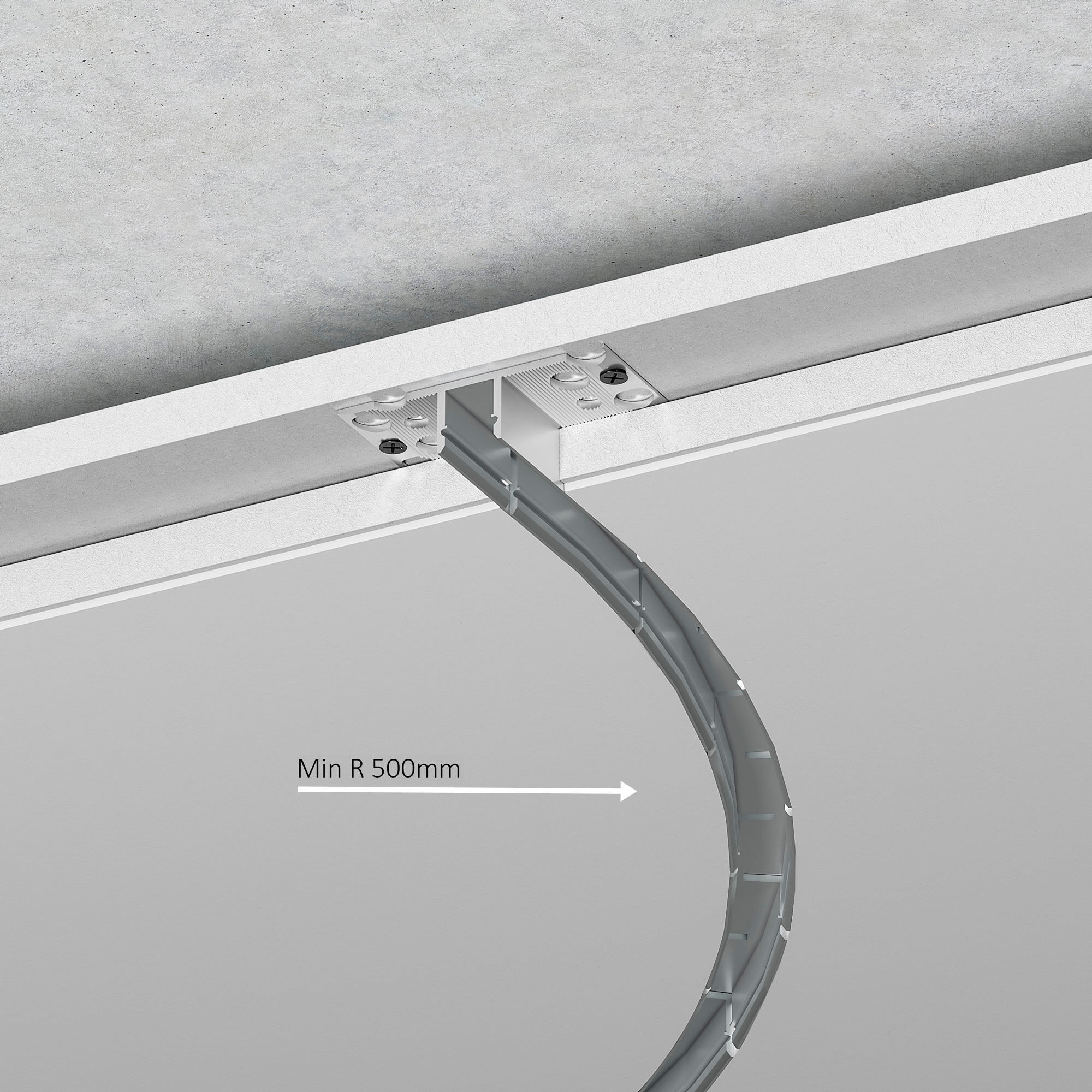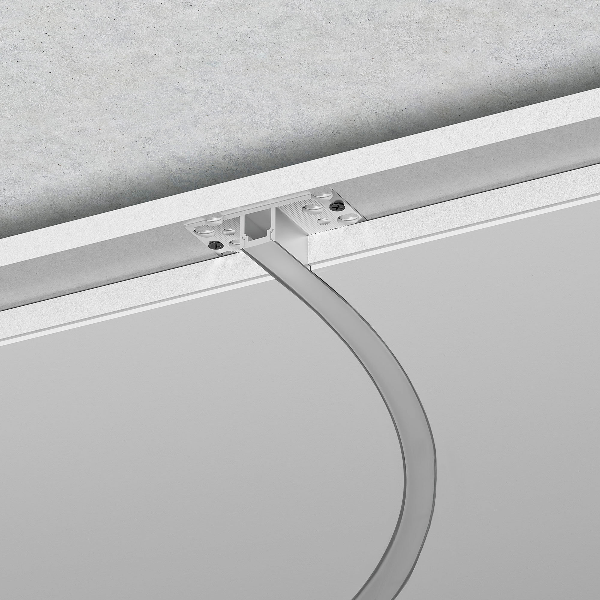 Профиль можно встраивать в пол, потолок или стены, создавая уникальные световые инсталляции. Пространство во внутренней полости профиля-основания используется в качестве кабель-канала для провода низковольтного электрооборудования.