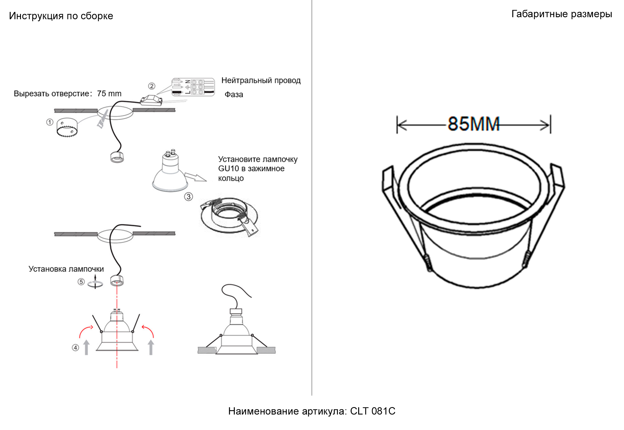 - Тип цоколя: GU10
