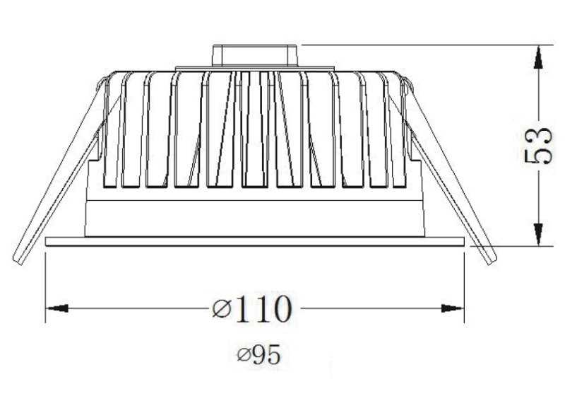 - Диаметр врезного отверстия: 95 мм (9.5 см)